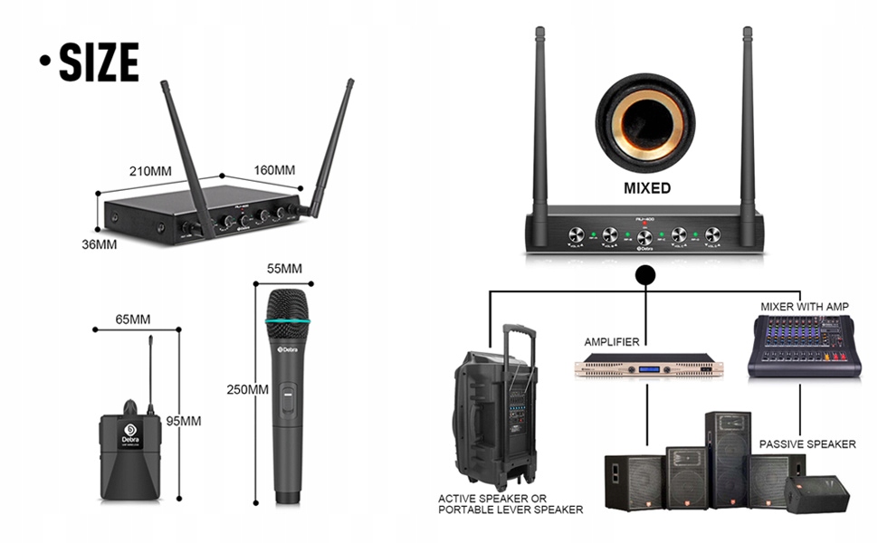 4-канальна бездротова мікрофонна система Debra Audio Pro UHF з бездротовими портативними петличними мікрофонами-гарнітурами, металевим приймачем, ідеально підходить для церковної караоке-вечірки (з 2 портативними та 2 переносними (B))