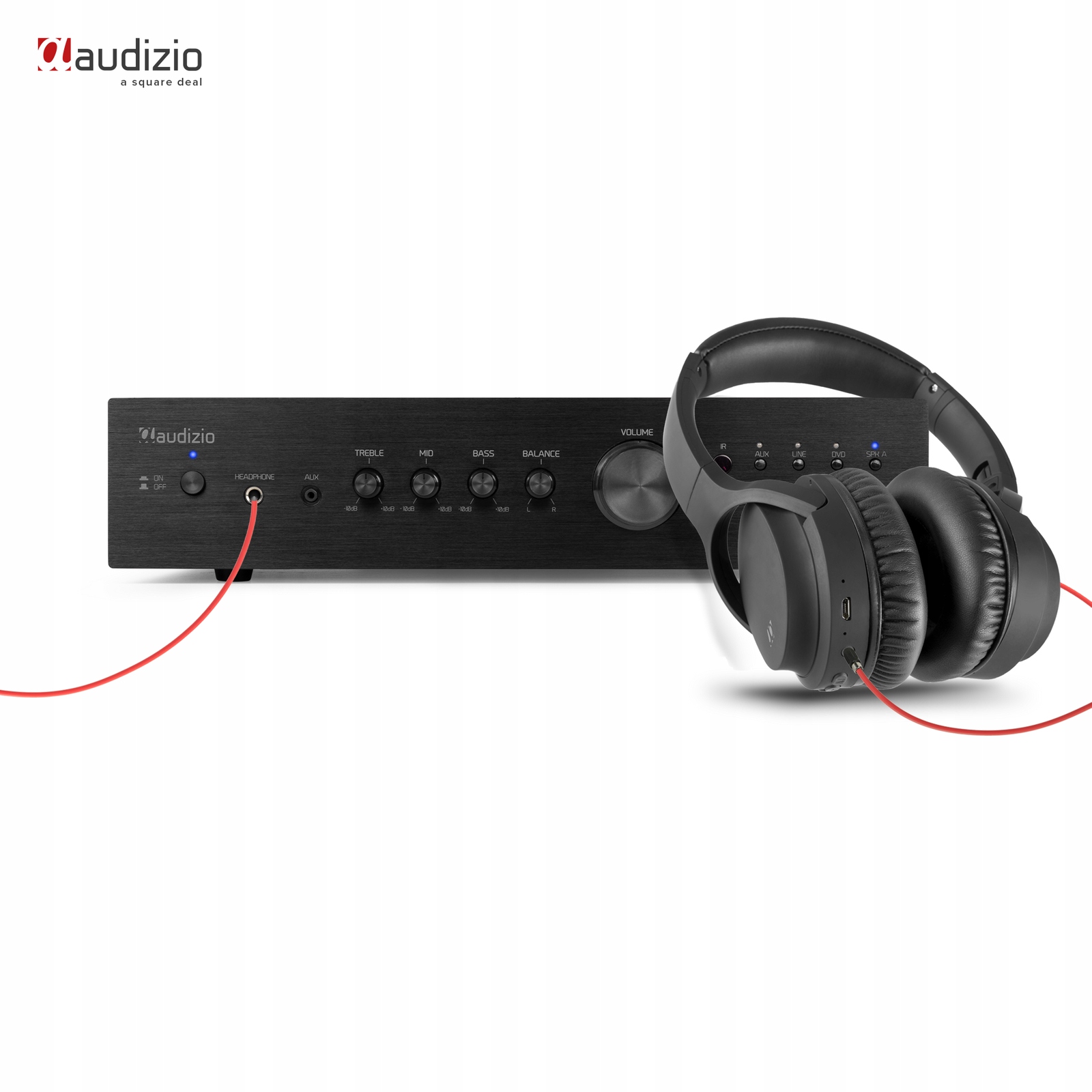 Крім можливостей бездротового зв’язку Bluetooth, також можна підключити аудіообладнання за допомогою дроту. Візьмемо, наприклад, CD-програвач, DVD-програвач, програвач*, ТВ-тюнер тощо. На задній панелі є кілька роз’ємів. Тут ви знайдете, серед іншого, оптичний (Toslink) і коаксіальний (RCA) вхід для цифрового підключення, наприклад, з DVD-програвачем, мультимедійним програвачем тощо. У випадку аналогових пристроїв, таких як вертушка, підсилювач має 2 лінійних входи RCA (RCA). Для швидкого (тимчасового) підключення, наприклад, MP3-плеєра, спереду є роз'єм 3,5 мм. Одним словом, багато можливостей!