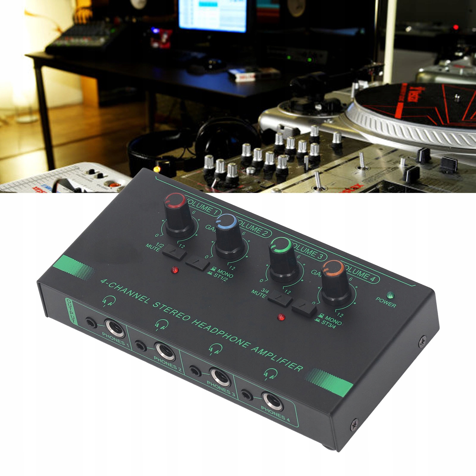 1. 4 КАНАЛЬНИЙ СПЛІТТЕР: цей розгалужувач для навушників має 4 порти розгалужувача каналів, кожен з яких може вручну та незалежно контролювати гучність і вихідний режим, підтримуючи перемикання стерео та моно.