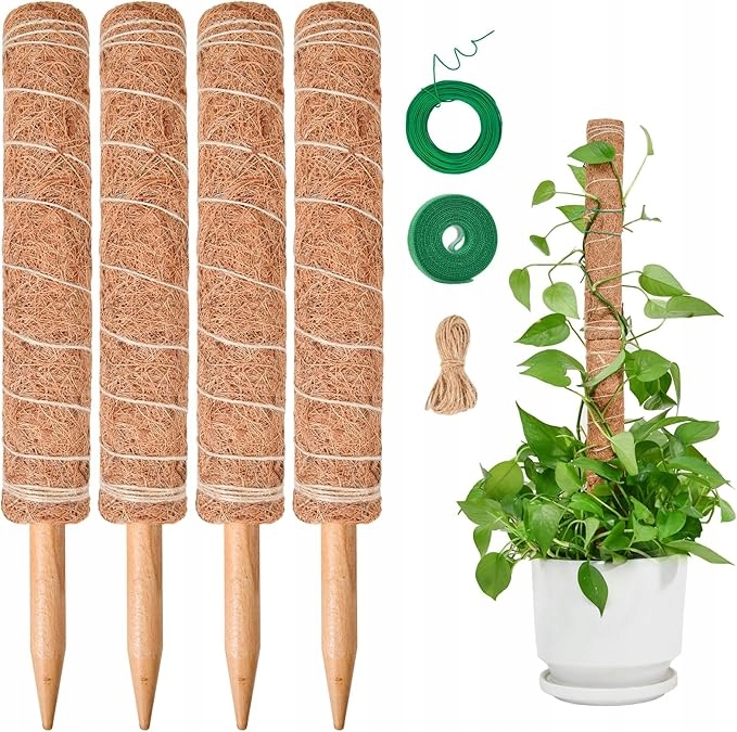 4 КОКОСОВІ КОЛИЧКИ, ВИСОТА 40 СМ, ДЛЯ В'ЮТКИХ РОСЛИН У ГОРШЧИКАХ