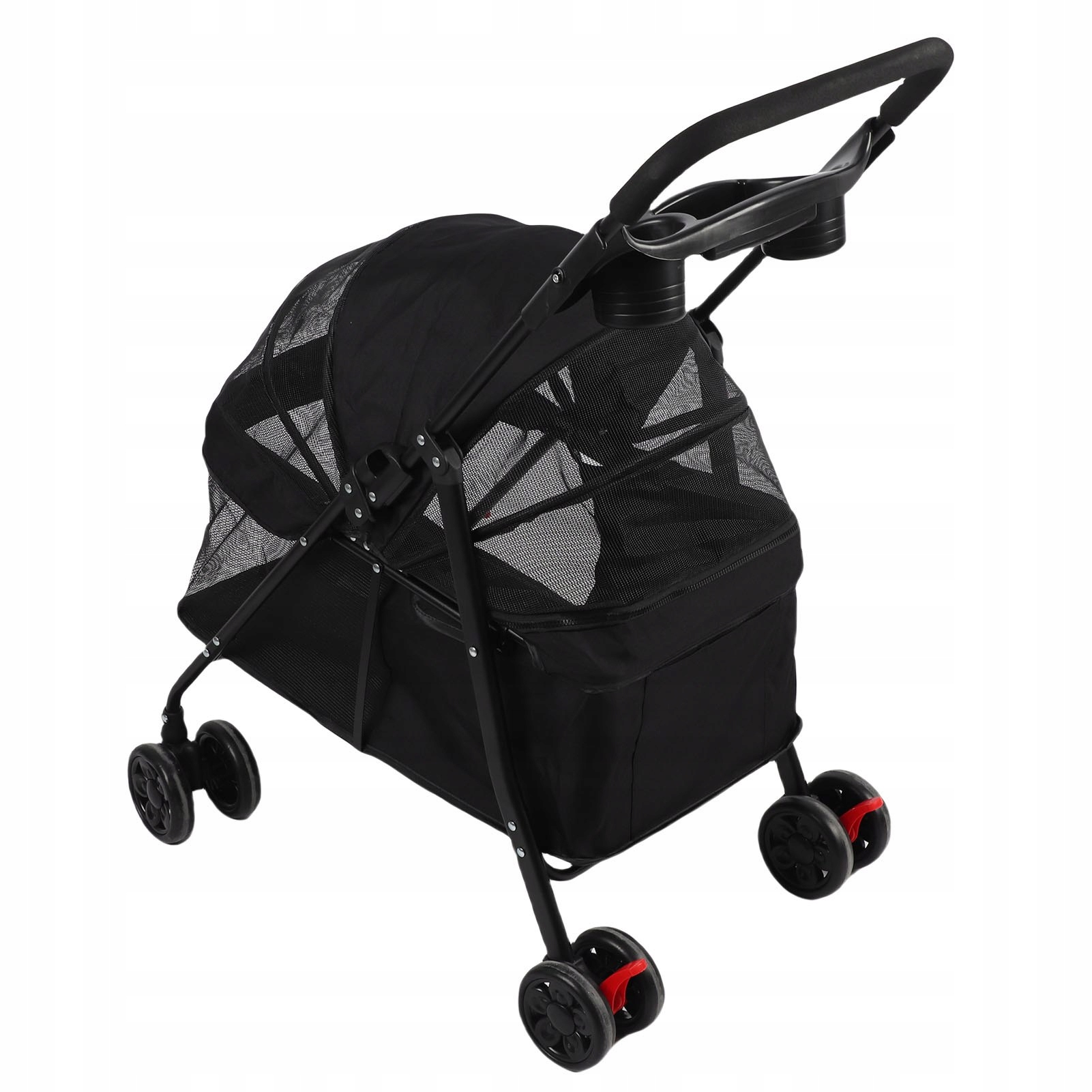 4. Тримач для чашок і закусок: у цій колясці для собак є зручний задній відсік для зберігання товарів для тварин і вбудований тримач для чашок, щоб зберігати напої під час прогулянок або подорожей.