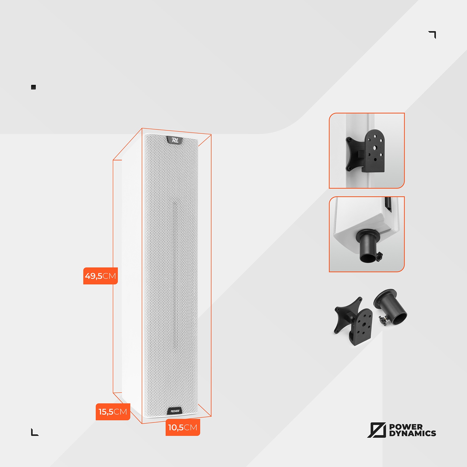стильні та компактні стовпчики з 4 x 3 "WOOFERS та 1" неодимієм Тветер забезпечує високу вірність звуку та широкий кут поширення. Житло, виготовлений з міцного абс, ступінь захисту IP44, ідеально підходить для встановлення всередині будівель. Включає універсальний тримач для кріплення з регулюванням кута та з'єднувачами кришки та кріплення до полюса.