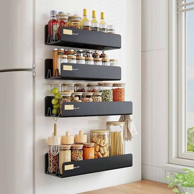 Магнітні полиці можна безпечно прикріпити до боку холодильника без буріння. Anty -slip після більш тривалого періоду використання