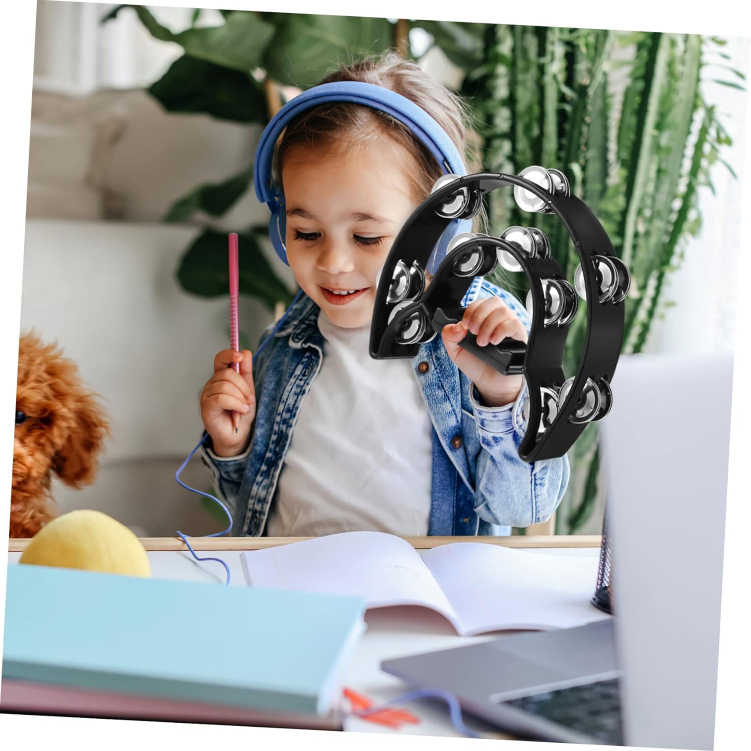 Дворядний ручний дзвінок, легка рукоятка, ергономічний дизайн, нековзка рукоятка, яку нелегко ковзати. чистий звук, обережно струсіть бубон і дзвіночок на зап’ясті, щоб отримати чистий звук. Пластинні дзвіночки широко використовуються для використання в приміщенні та на відкритому повітрі для музичного навчання для дитячих вечірок та інших випадків. Дитячі ритмічні музичні іграшки, зручні для дітей, виготовлені з нешкідливого пластику, зручні для дітей, безпечні та надійні для використання немовлятами та дітьми. Чіткі мелодії для дитини підходять для дзвінка на інструменті, який може створювати чистий звук під час струшування.