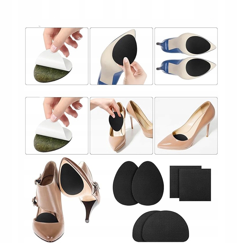 Простий процес нанесення: просто протріть підошви, видаліть паперові клейкі подушечки та приклейте їх до каблука взуття. Міцно притисніть і трохи зачекайте, поки клей добре прилипне.