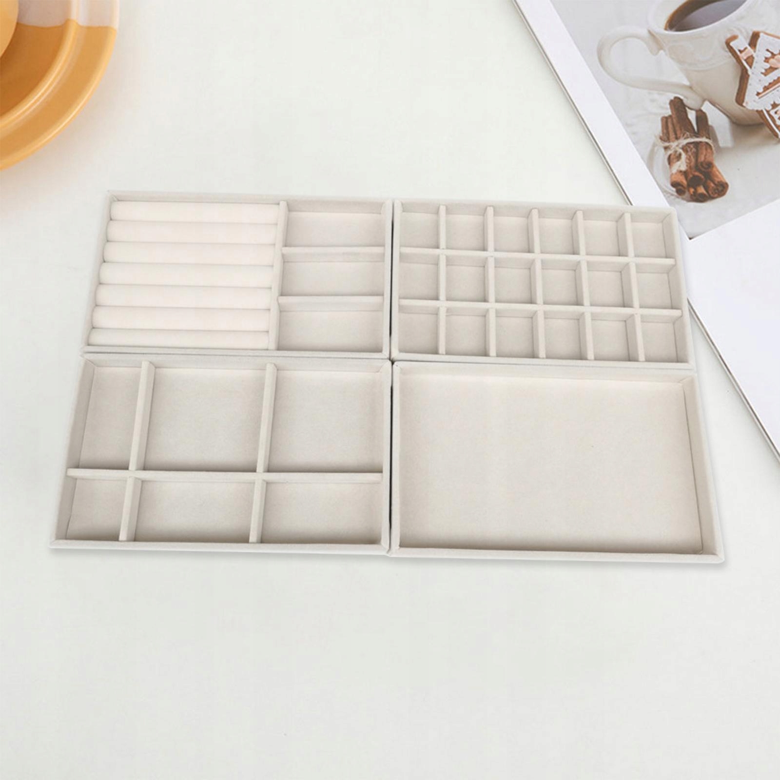 Набір із 4 органайзерів для ювелірних виробів: цей набір лотків для ювелірних виробів складається з 4 лотків із різним розташуванням, включаючи кільця, 6 решіток, 18 решіток з 1 відділенням