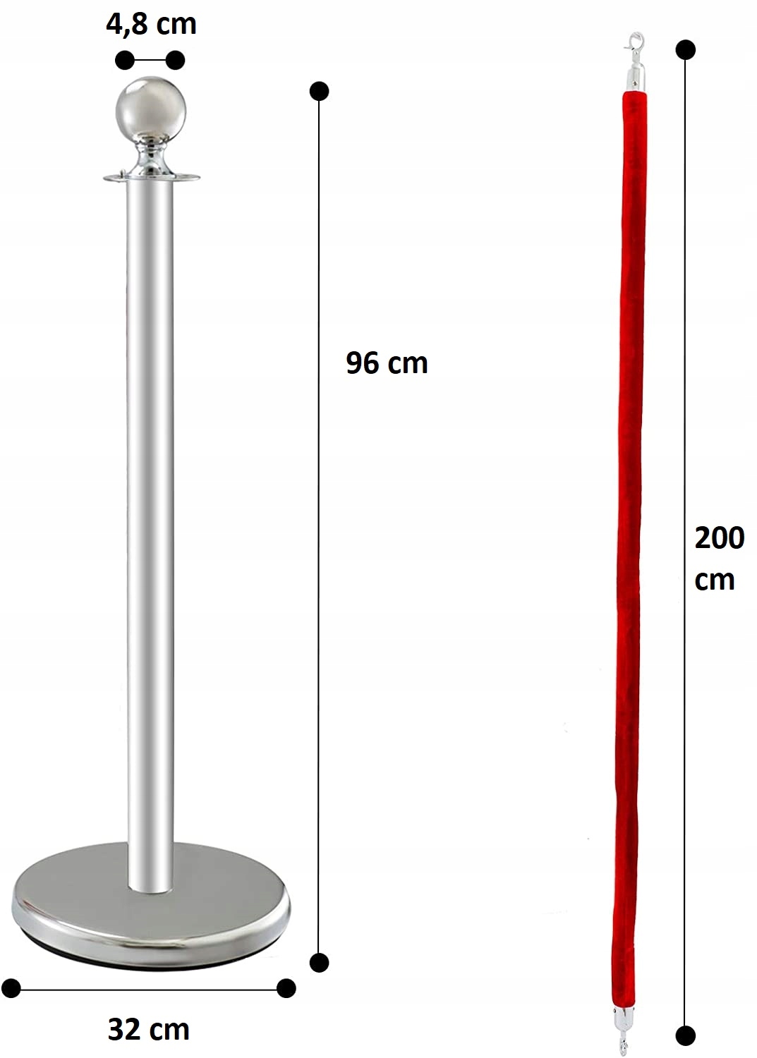 Стійка, безпечна конструкція - стовпи виготовлені з полірованої нержавіючої сталі, що забезпечує не тільки елегантний зовнішній вигляд, але й довговічність протягом багатьох років. Протиковзкі круглі основи гарантують надзвичайну стабільність