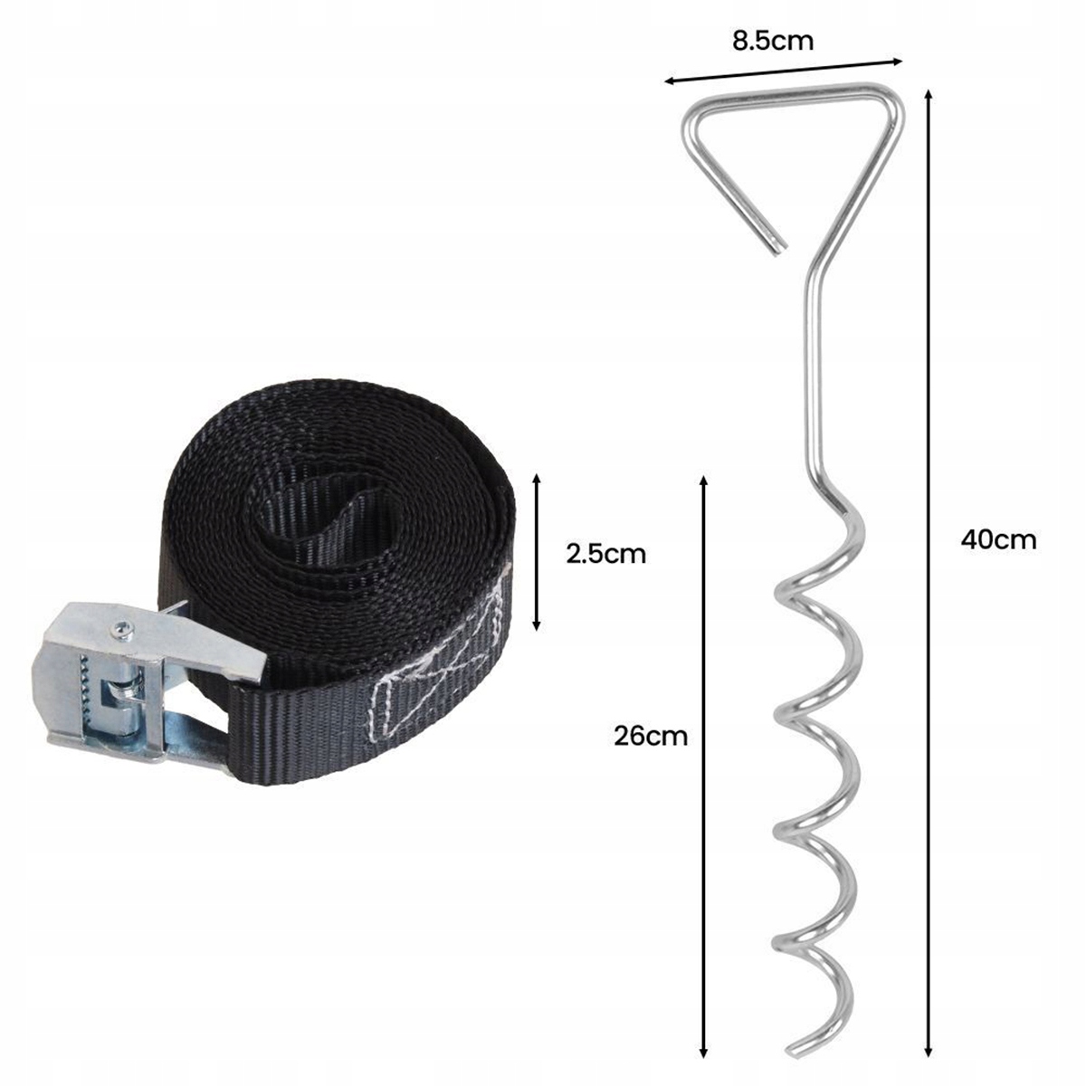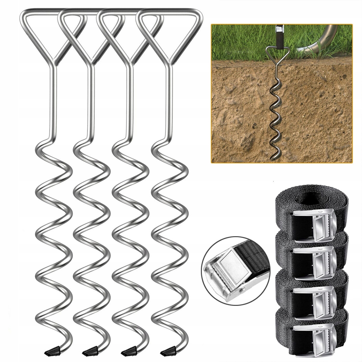 ➡, що ви отримаєте: кріпильний набір, що складається з 4 спіральних якорів на землю та 4 поліестерні смужки. Підходить не тільки для батуту, але і для гойдалків, оранжень, наметів, слайдів для дітей, гри в вежі тощо