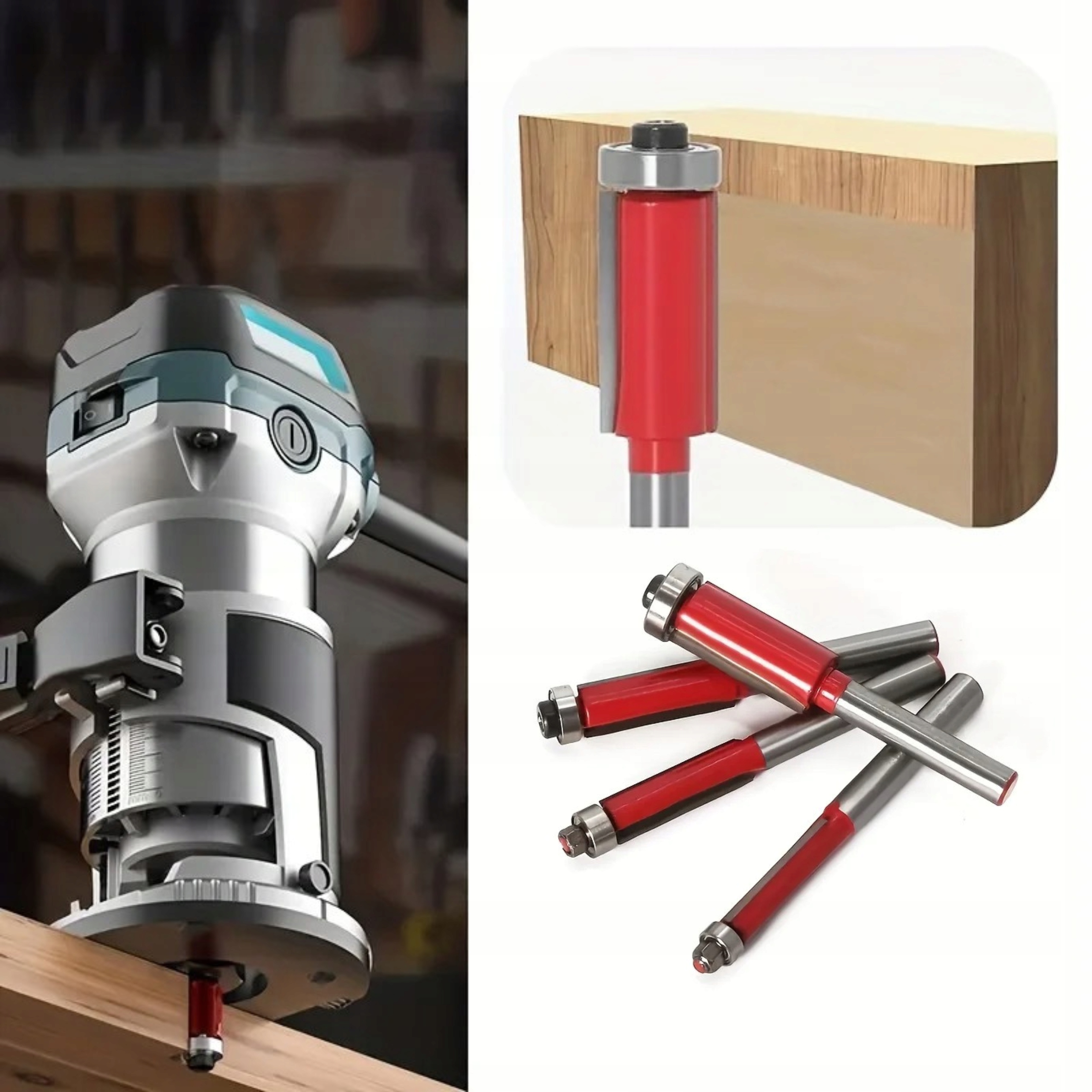 просте фрезерування різання з нижчим підшипником, довгим, 6 мм графітовим зчепленням, призначеним для точного деревообробки, ПВХ, ДСП, серед інших, використовуючи маршрутизатори. Голова обладнана різними вставками, виготовленими з спірованого карбіду. Різник оснащений підшипником, який полегшує керування фрезерною машиною.