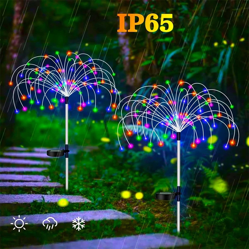Світлою сонячною феєрверком є два режими освітлення. Коли перемикач встановлюється на сторінку ON, він є миготливим режимом, перемикач знаходиться в режимі вимкнення в середньому положенні, а положення вимкнення - це постійний режим світла. Це творчий подарунок для друзів чи сусідів на Різдво, Хеллоуїн та День Подяки. Це зовнішнє декоративне освітлення буде висвітлювати тераси, квіткові грядки, сади, ярди, огорожі, тротуари та доріжки тощо.