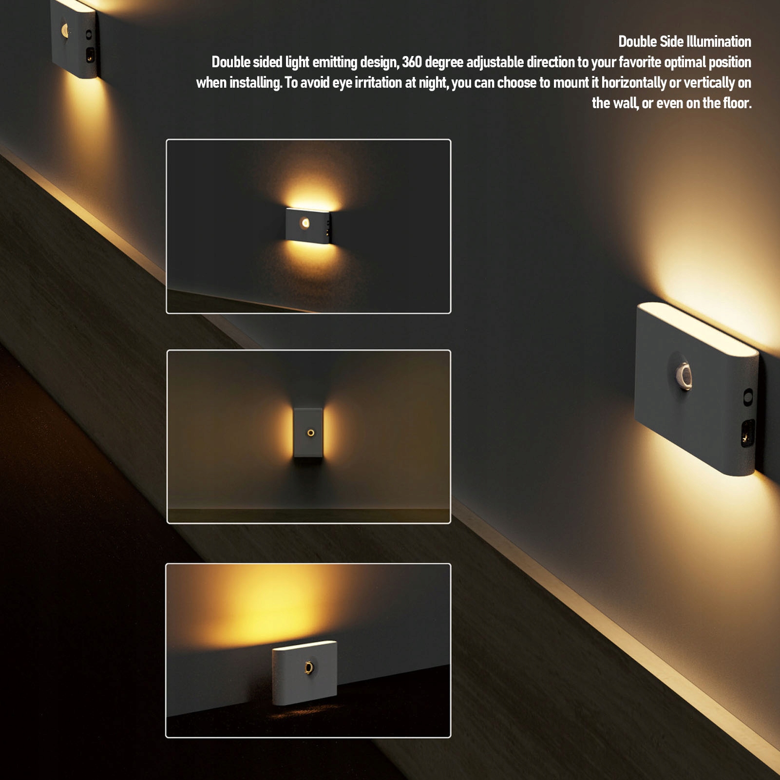 1. Інтелектуальний рух та світове виявлення: оснащені вдосконаленими датчиками, такими як датчик ЦРУ, датчик світового датчика та датчик руху, ця світлодіодна нічна лампа виявляє рух під кутом 110 градусів і в межах від 3 до 5 метрів у темряві. Автоматично висвітлює свій шлях протягом 20 секунд після останнього кроку, заощаджуючи непотрібне споживання енергії.