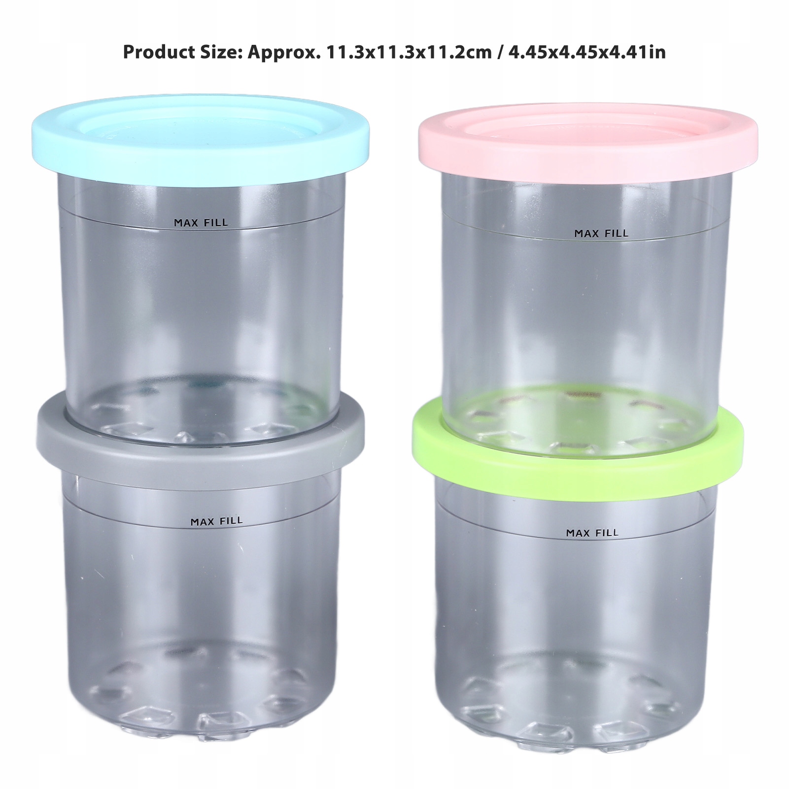3. Ефект герметизації: Наші кришки добре прилипають до контейнера і не зламаються і не порушують святковий, добре ущільнюють і запобігають повітря, завдяки якому морозиво є максимально свіжим. Легко в чистоті: контейнер для морозива у формі кухоль не прибирає, щоб очистити його вручну в теплій воді або можна промивати в посудомийній машині. Прозорі кружки контейнерів переконують ідентифікацію та знаходження того, що ви шукаєте. Пакет містить: Пакет містить 4 контейнери для зберігання морозива, 4 кружки та кришкою, які задовольнять ваші щоденні потреби, щоб створити улюблене морозиво на замовлення та насолодитися DIY Fun!