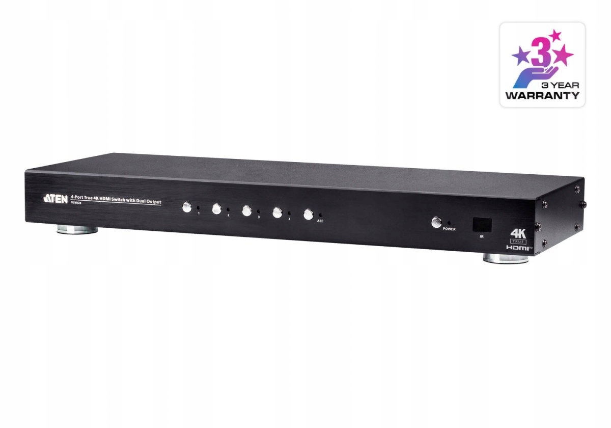 Перемикач ATEN VS482B є ідеальним рішенням для додатків, які потребують чудової роздільної здатності True 4K відео під час підключення 4 джерел HDMI A/V до 2 дисплеїв HDMI.