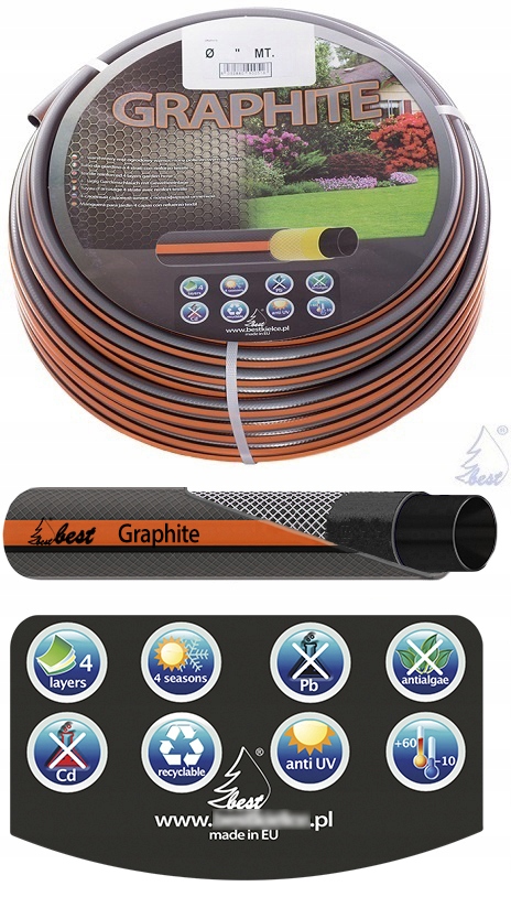 - Графітовий садовий шланг, 4 шари, підвищеної ваги та довговічності.