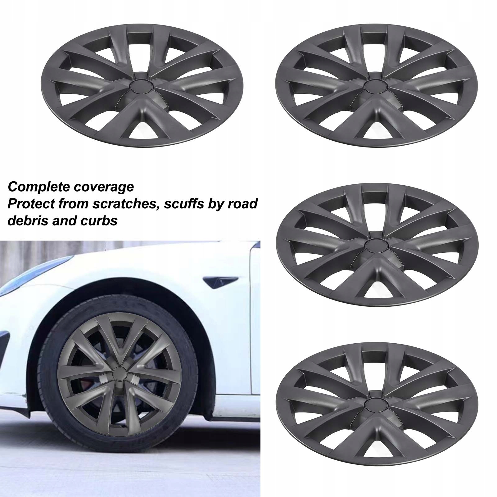 2. Повний захист коліс: повний обід забезпечує повне покриття для захисту обода вашого автомобіля від подряпин, потертостей та інших пошкоджень, спричинених сміттям і бордюрами.