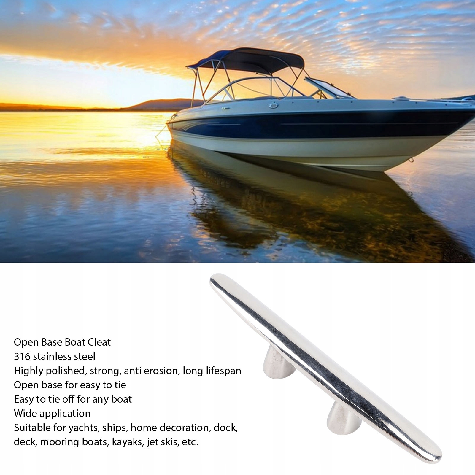 5. УНІВЕРСАЛЬНЕ ЗАСТОСУВАННЯ: відкрита конструкція основи дозволяє легко прив'язати мотузки до будь-якого човна. Ідеально підходить для яхт, кораблів, причалів, внутрішнього оздоблення, доків, палуб, швартових човнів, каяків, водних мотоциклів тощо.