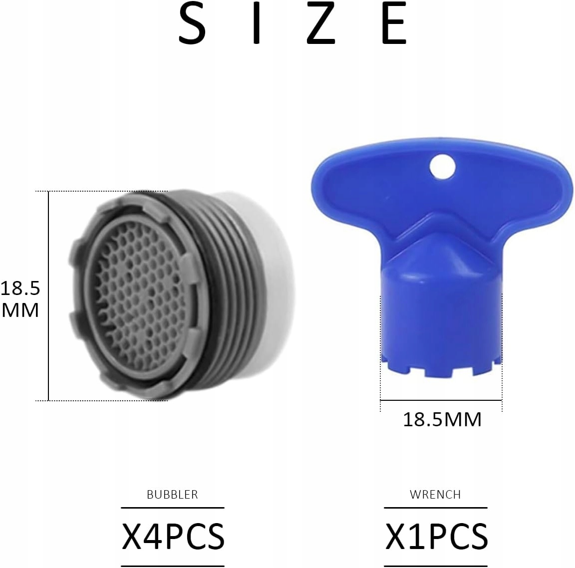 Ви отримаєте 4 аератори розміром 18,5 мм і 1 ріжковий ключ, які підходять для головок змішувача 18,5 мм, щоб задовольнити ваші потреби на заміну.