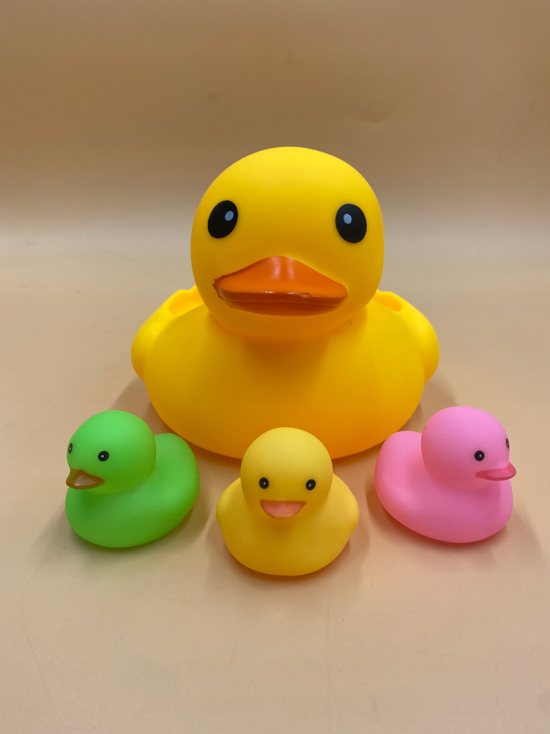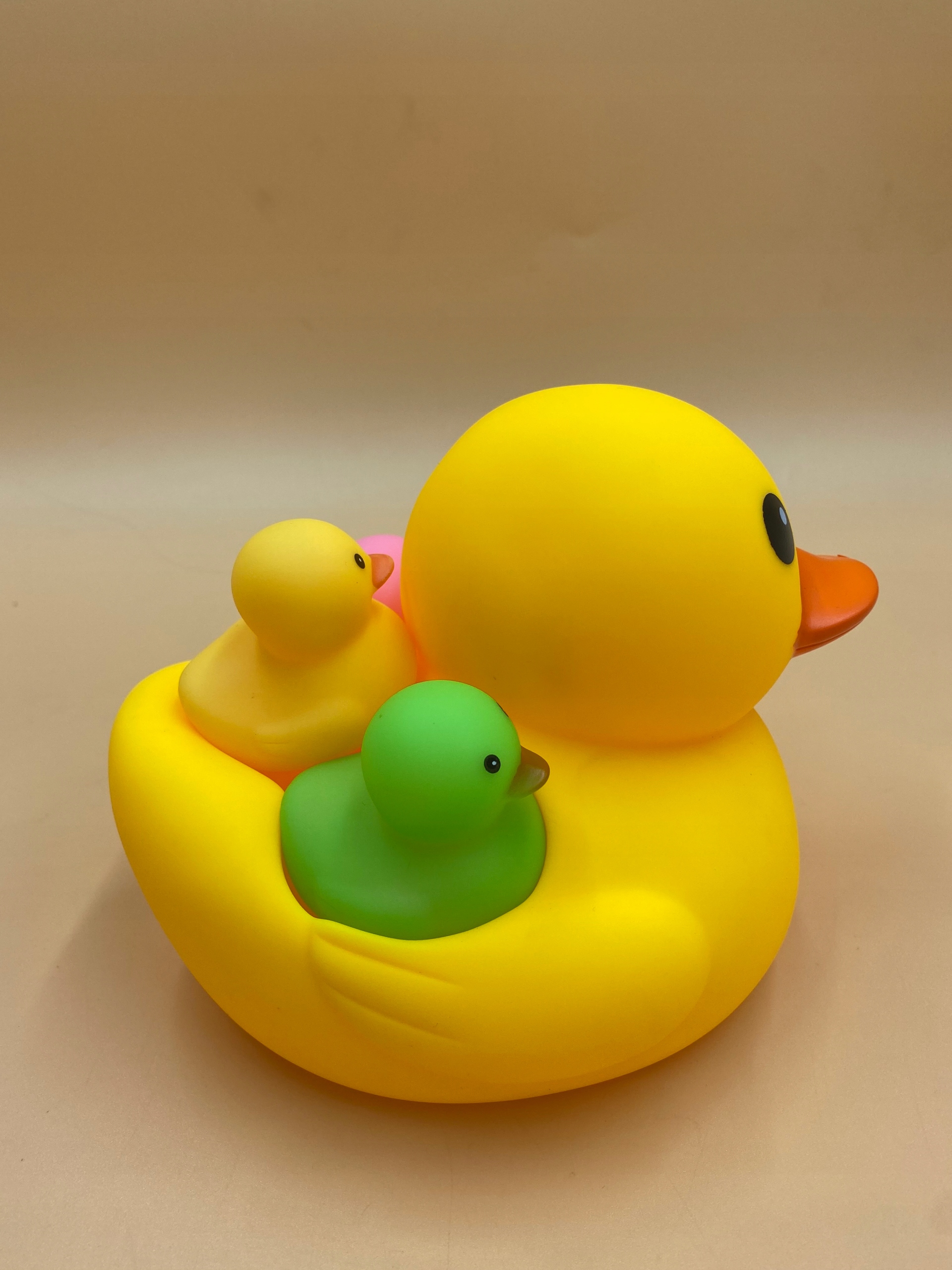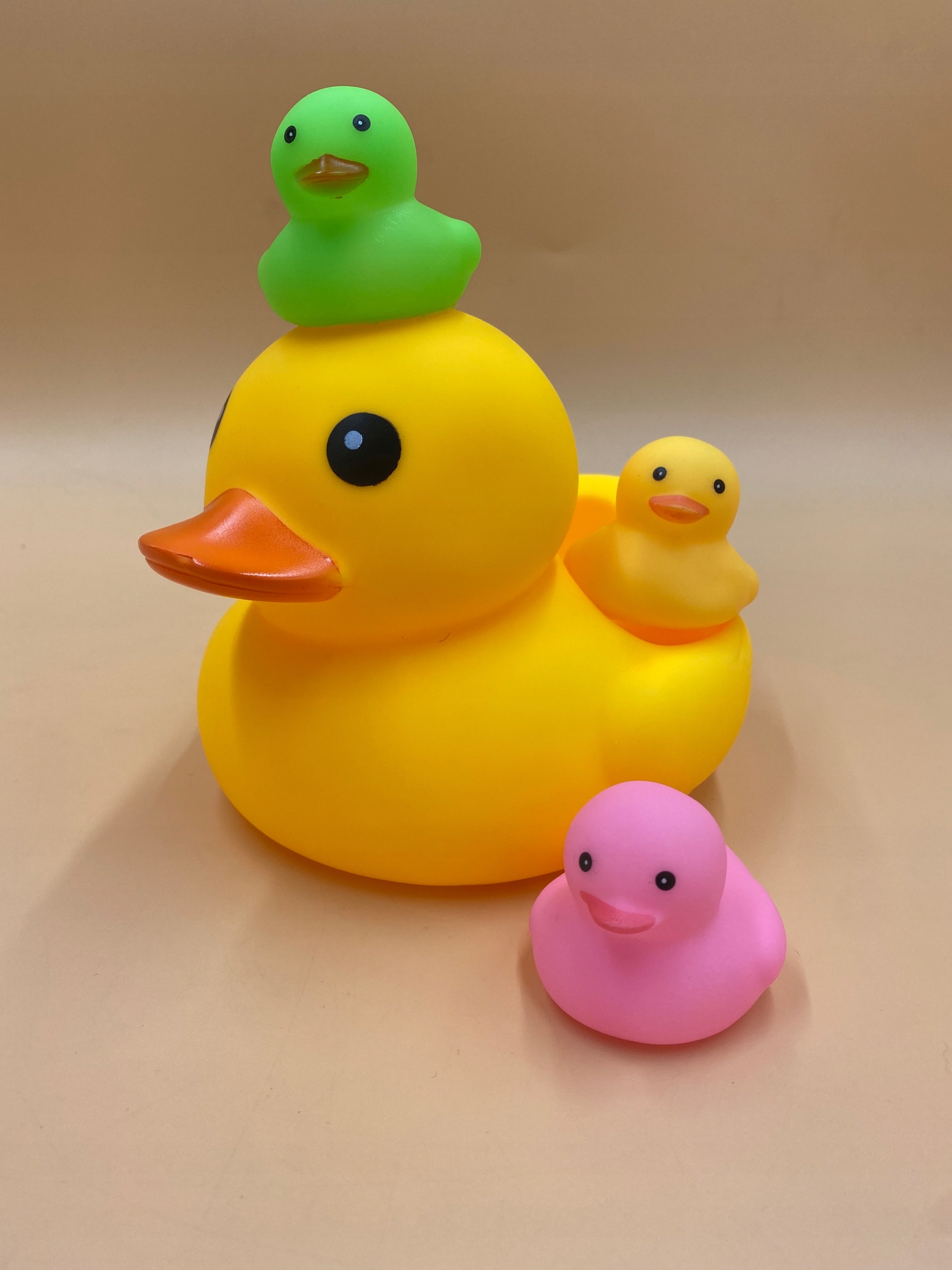 Набір складається з чотирьох частин: мами-качки та трьох каченят. Велику качку можна використовувати як мильницю.