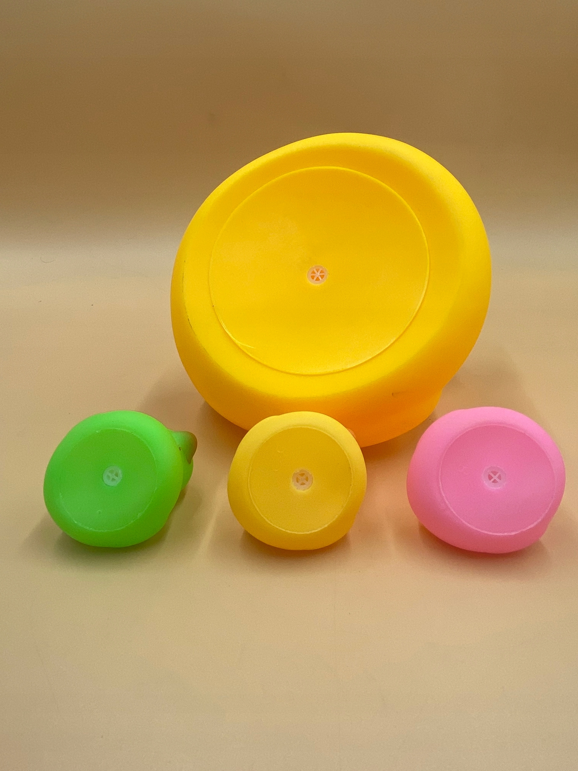 Безпечні іграшки для купання Yellow Duck мають виразні кольори та цікаві візерунки, які спонукають дітей до гри. Завдяки різноманітним формам і виступам вони стимулюють відчуття дотику.