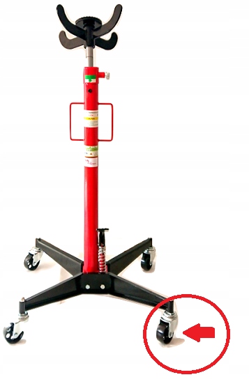 Стійкі запасні колеса для підйомника коробки передач. Колеса поворотні та оснащені підшипниками, що полегшує керування.