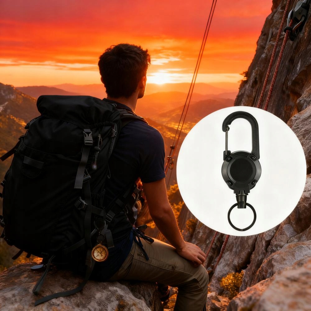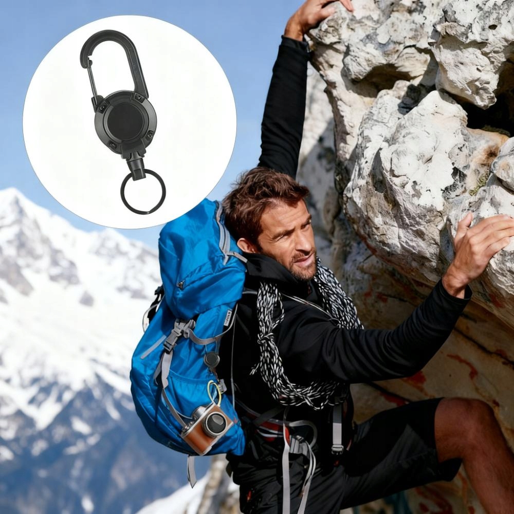 Кільця для ключів виготовлені зі стійкого до корозії АБС-пластику та високоякісної нержавіючої сталі. Покриття ABS ефективно захищає від подряпин і механічних пошкоджень, а сталевий трос вантажопідйомністю до 20 кг і точний пружинний механізм гарантують довгі роки безвідмовної роботи. Міцний карабін D-типу забезпечує безпечне та стабільне кріплення до поясу, рюкзака чи сумки.