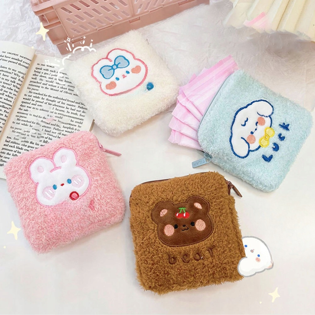 4 ШТАТИ КОЛЬОРОВИХ ПЛЮШЕВИХ СУМОК / ЧОХЛІВ ДЛЯ ГІГІЄНІЧНИХ ПРОКЛАДОК