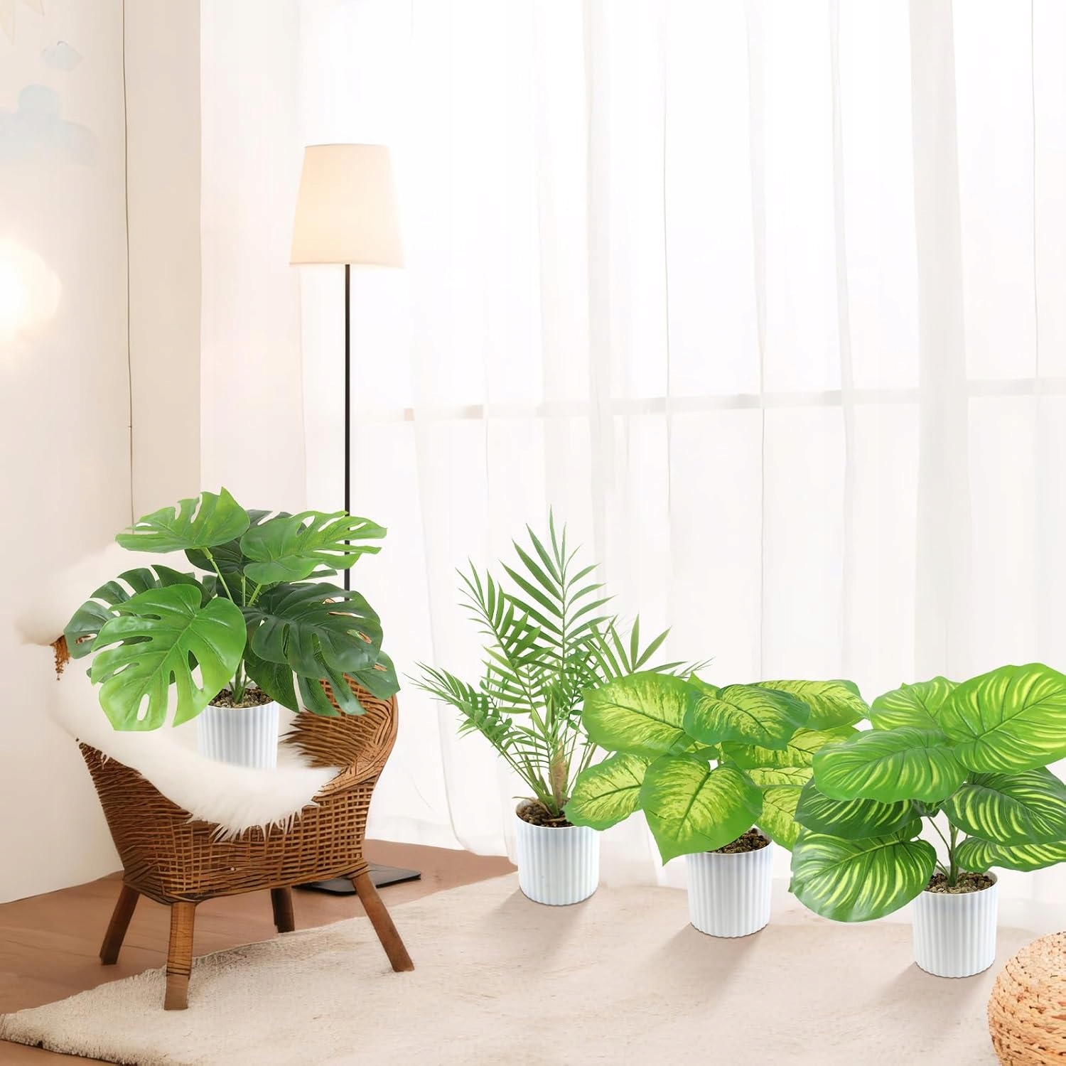 - ✅ Набір із 4 штук штучних рослин (монстера та пальма)