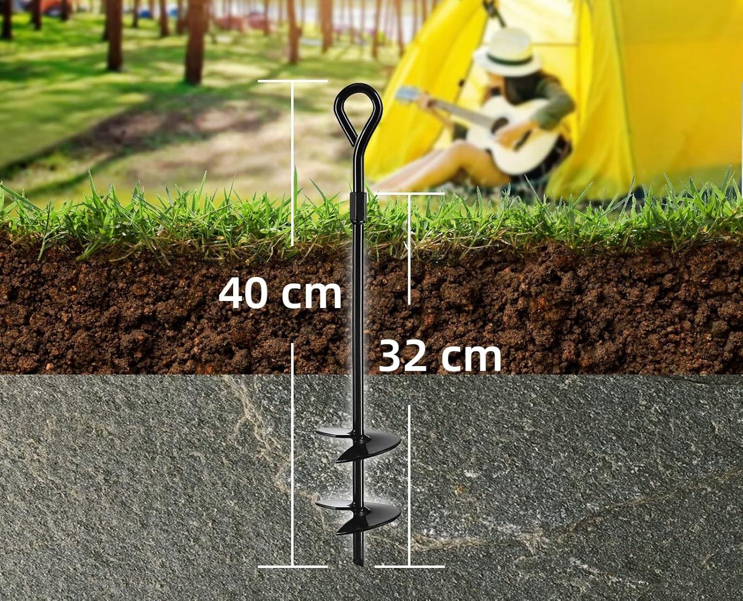 Антикорозійний анкер 40 см для павільйону, батута, намету для кемпінгу, гойдалки, навісу для автомобіля (конструкція з подвійною спіраллю) + адаптер для ключів