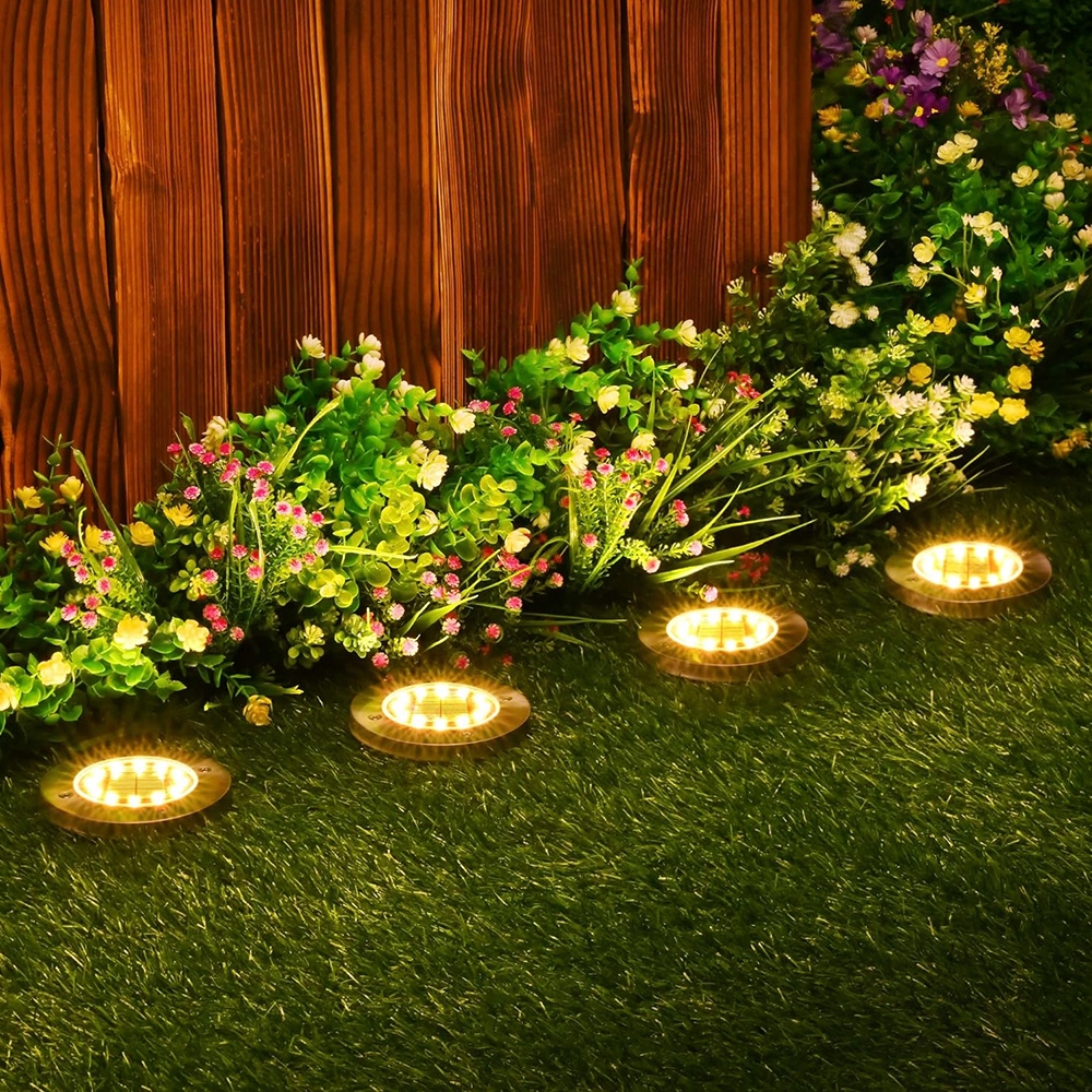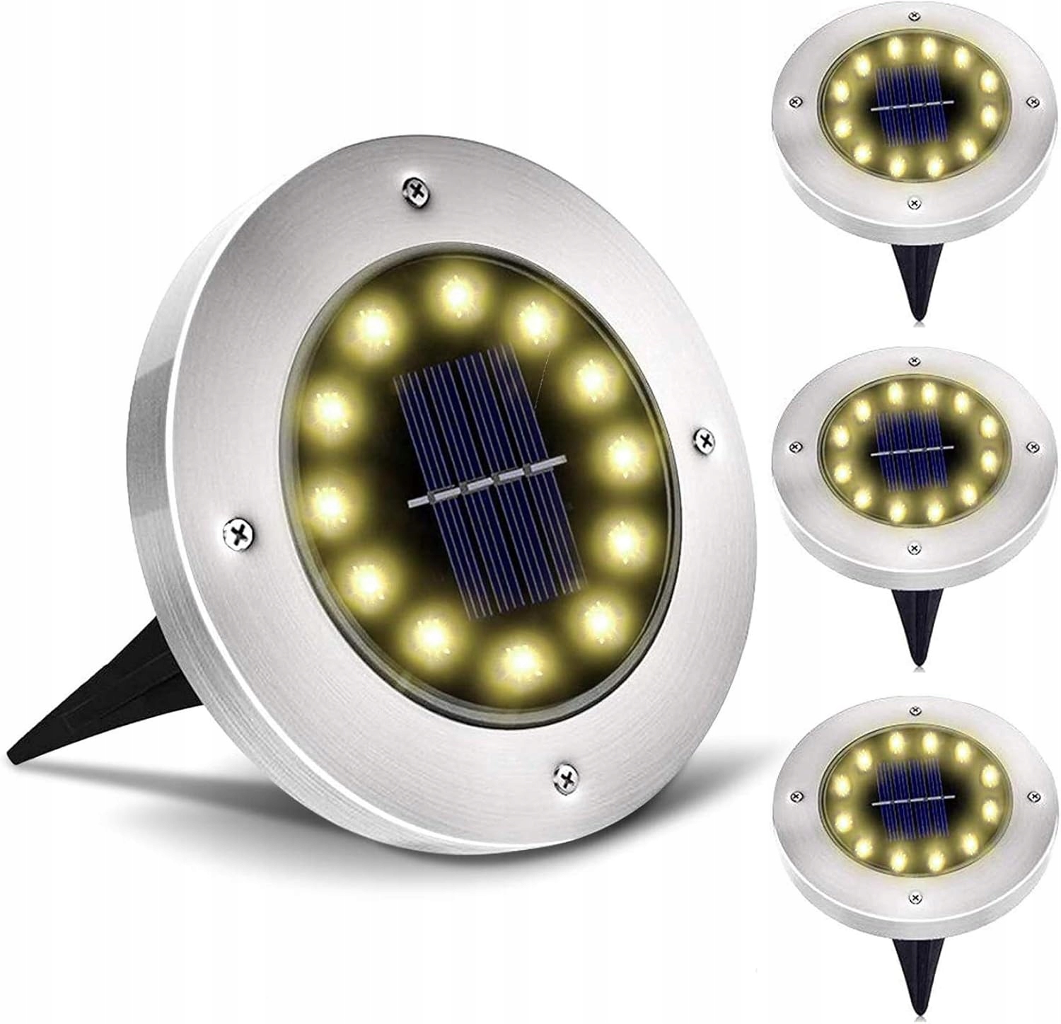 4 СВІТЛОДІОДНА ПЛОСКА НАЗЕМНА САДОВА ЛАМПА, СОНЯЧНИЙ, ТЕПЛИЙ БІЛИЙ, СТАЛЬ