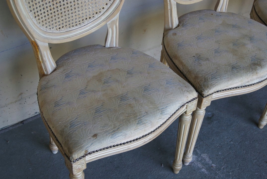 Стан 4 стільців можна побачити на фотографіях, конструкція стабільна, можливо, потребує ремонту