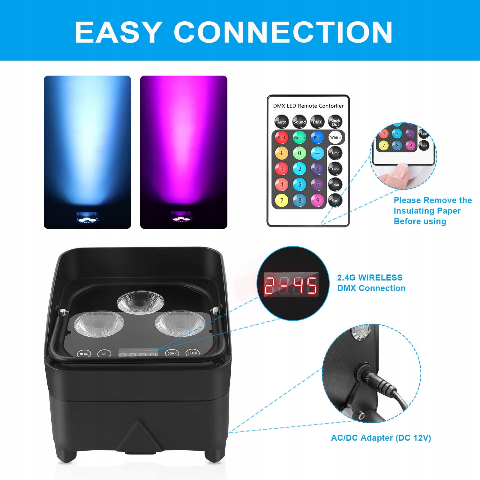 Режим керування: 2.4G бездротовий DMX512, головний-підлеглий, автоматичний, звукова активація, Wi-Fi APP, ІЧ