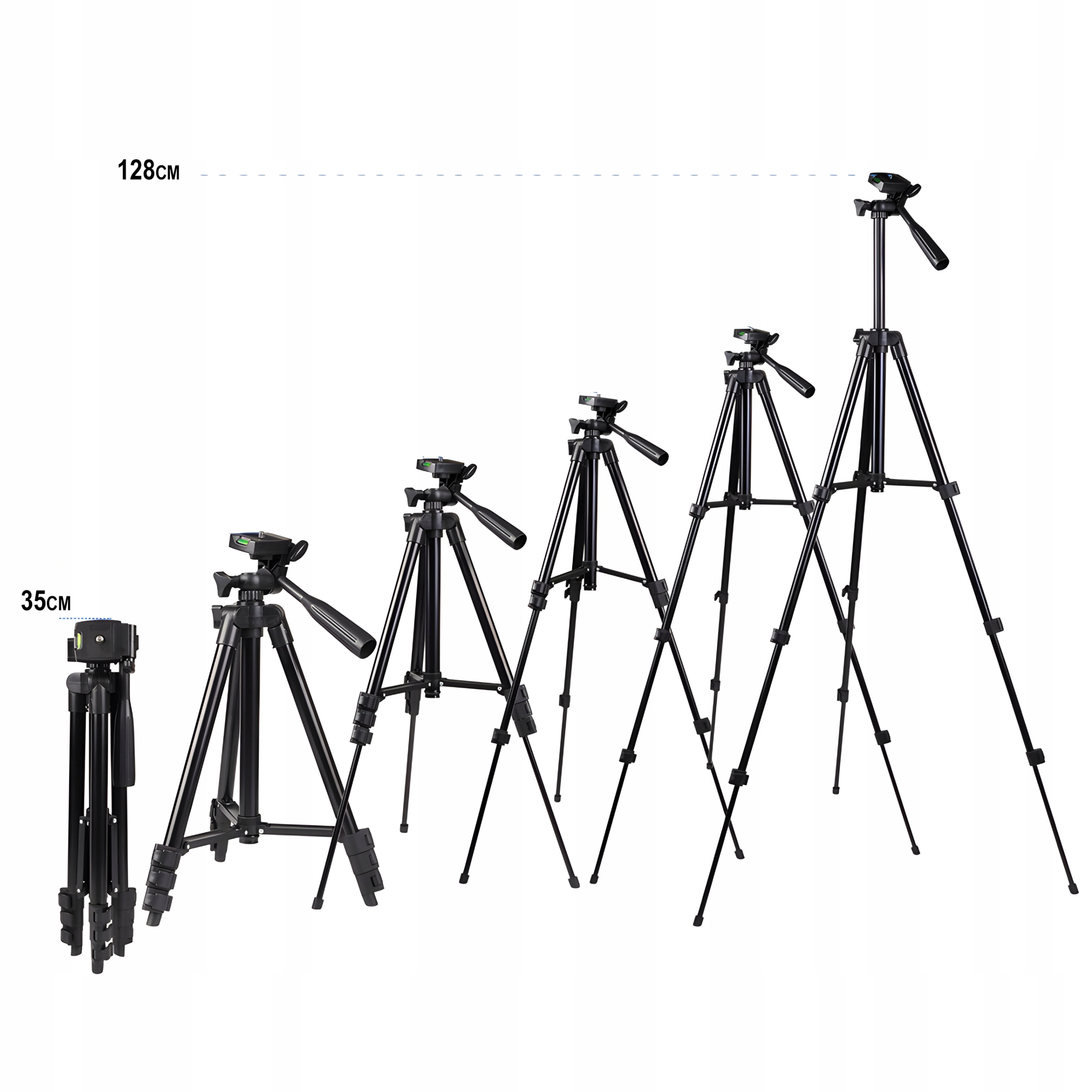 Наш штатив має градуйоване регулювання висоти в діапазоні 35-128 см і головку, що обертається на 360 градусів. Крім того, він має універсальний тримач для кріплення смартфона або фотоапарата, завдяки якому можна встановити практично будь-яку модель, доступну на ринку. Міцні затискачі гарантують надійне утримання телефону, а регульований тримач дозволяє змінювати положення телефону. Усі ці елементи дозволяють налаштувати штатив відповідно до ваших поточних потреб і оптимально обрамити кожну фотографію чи план.