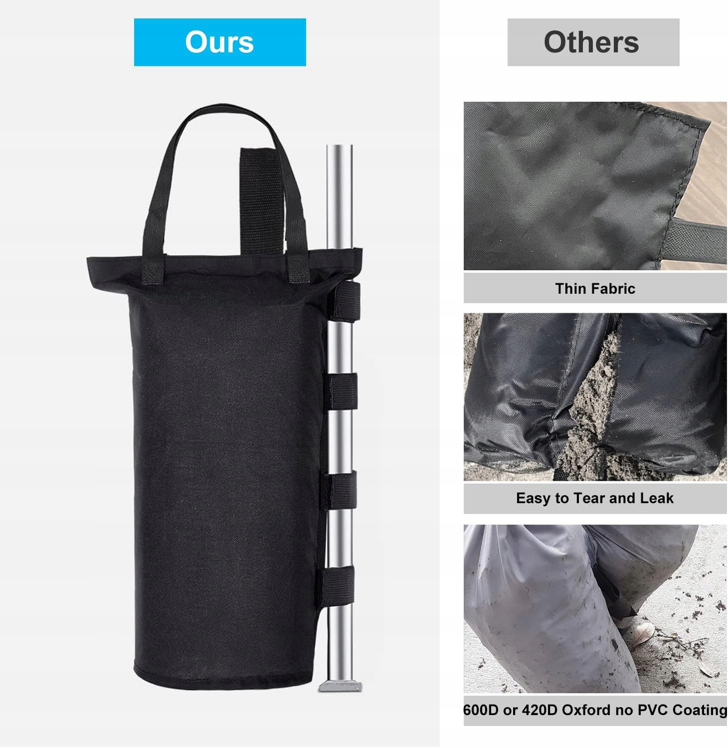 ✨✨【Надійна конструкція】 Кожен баластний мішок може вмістити максимум 30 фунтів піску , каміння, бруд та інший вміст. Підходить для будь-якого висувного навісу та миттєвих укриттів для кемпінгу, спортивних парасольок, батутів.