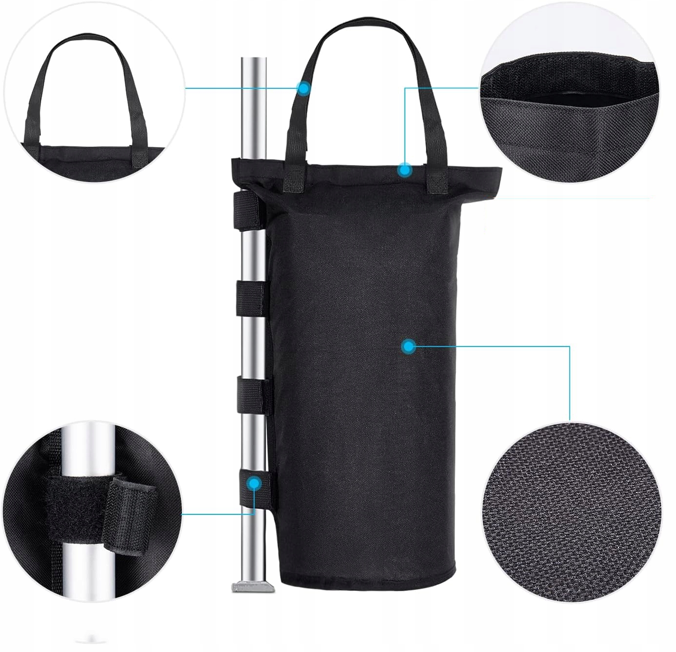 У набір входить чотири сумки, тому ви можете вмістити 4 ніжки для намету, фіксований навіс. Універсальні важкі мішки можна наповнити піском, камінням, снігом або будь-яким доступним матеріалом. Подвійні кишені для пляшок з напоями місткістю до 1 літра. Спеціально розроблені ремені на липучці забезпечують надійне кріплення багажу до ніжок купола Instant, ніжок підвіски чи верхньої ферми. Просто заповніть клапан і прикріпіть його до купола для безпечного, стабільного положення.