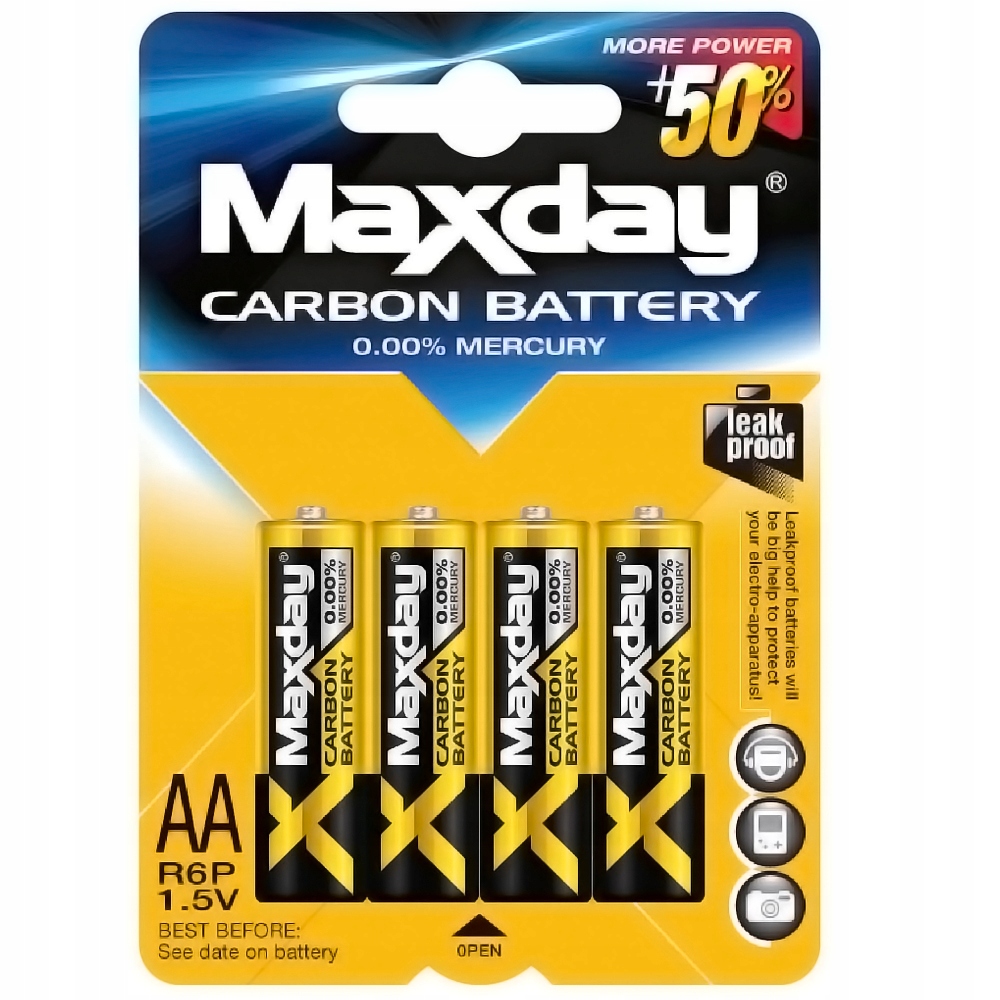 4 ВЕЛИКІ ЛУЖНІ БАТАРЕЙКИ AA R6 R-6 4 ШТ. MAXDAY R6/60/1200