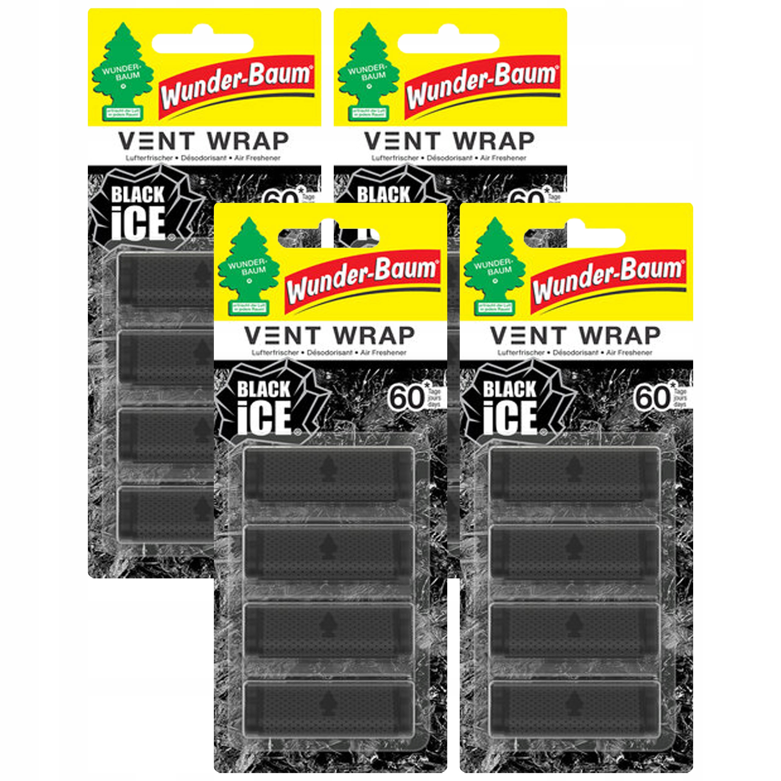 4× Wunder-baum Odświeżacz Auta Wrap Black Ice 4szt