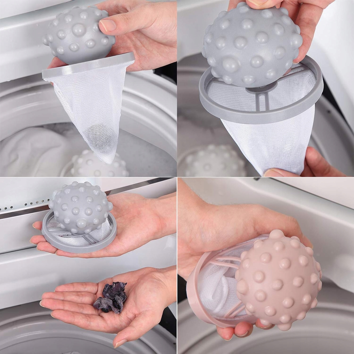 Як це працює: коли пральна машина працює, вода піднімає дрібні частинки бруду вгору, і коли вони падають, вони легко потрапляють у плаваючий сітчастий мішок;