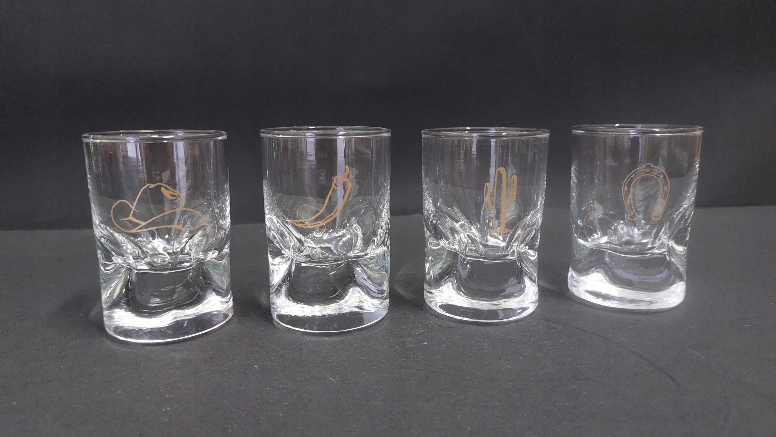Набір із 4 предметів, скляні склянки з мотивом підкови, перцю, капелюха та кактуса.