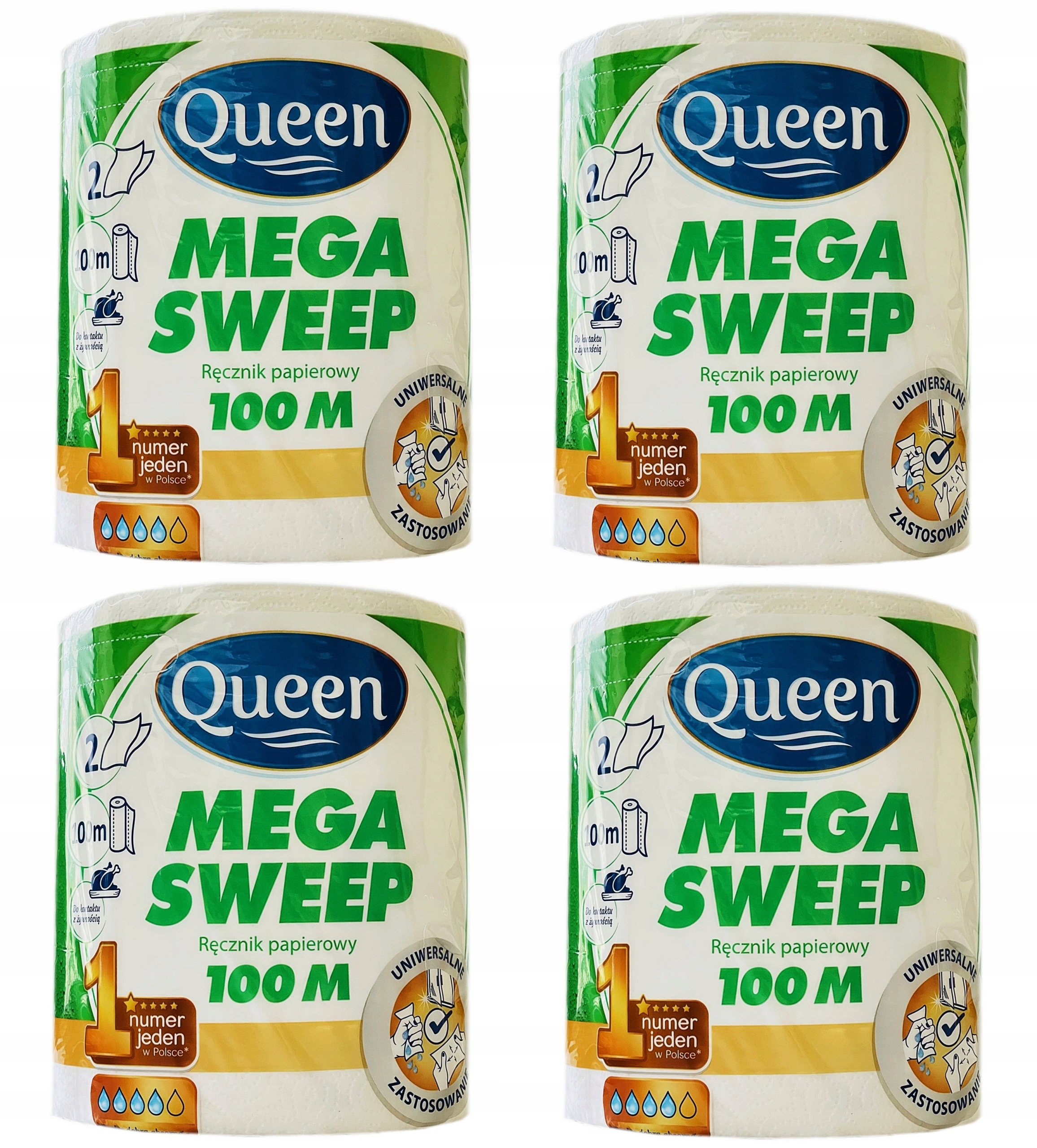 Queen Mega Sweep номер 1 в Польщі - це міцний і делікатний кухонний рушник довжиною до 100 м. Рушник відмінно вбирає вологу і не залишає розводів на очищених поверхнях. Універсальне використання рушника робить його надзвичайно корисним у повсякденній діяльності вдома та на роботі.