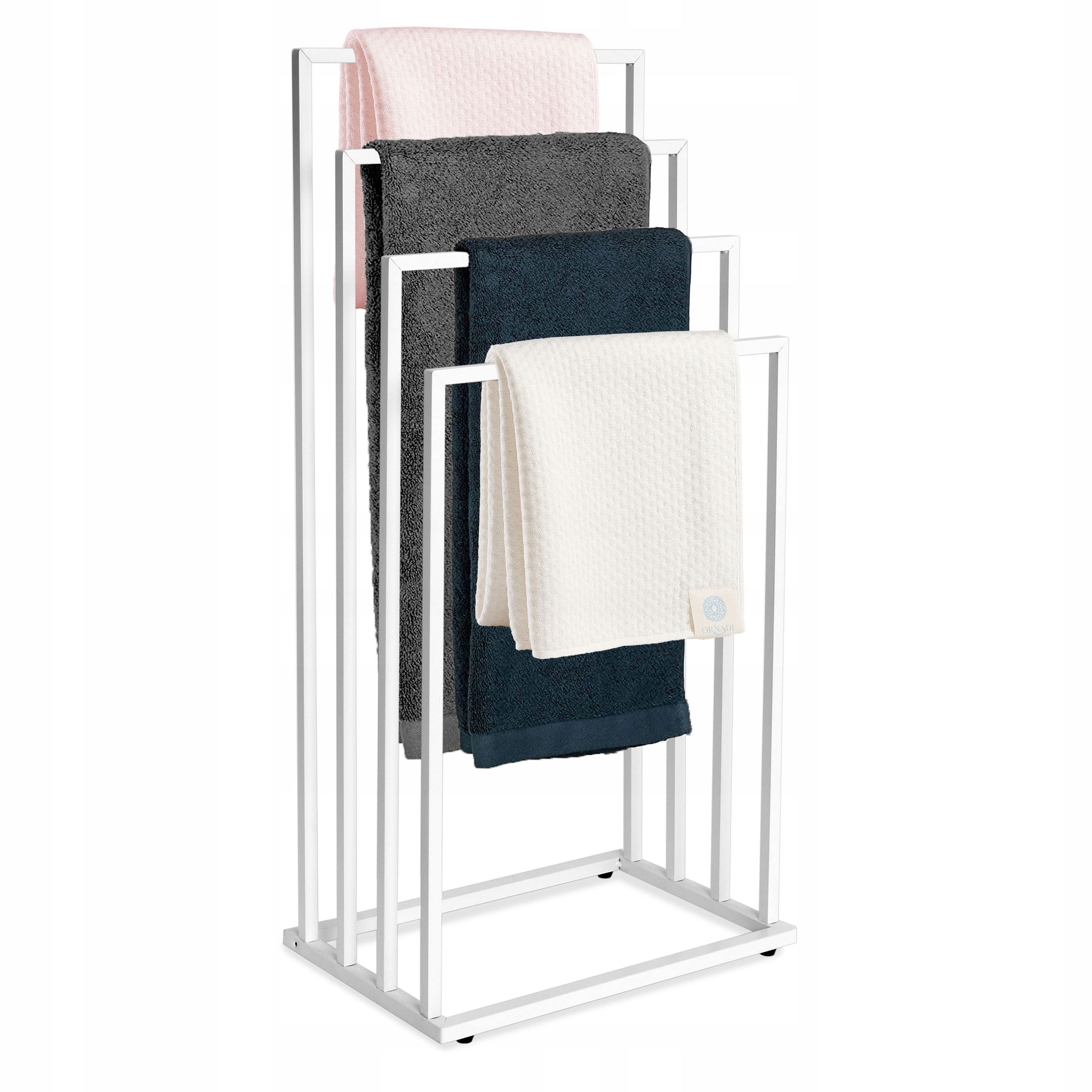 Neli - окремо стоїть практична вішалка для рушників. Виготовлений із сталі найвищої якості з порошковим покриттям і покритий білим кольором. Має аж 4 кронштейни на різній висоті, що полегшує одягання та знімання рушників. U-подібна конструкція рами забезпечує більш швидке та ретельне сушіння рушників та економить місце. Підставка стійка і в той же час легка. Ми легко переставляємо її в обране місце. Основа підставки закріплена захисними ніжками, які запобігають дряпанню підлоги. Neli ідеально доповнить будь-яку ванну кімнату. Крім практичних цінностей, це цікава прикраса кімнати, яку неможливо залишити без уваги. Чудово впишеться в сучасний інтер'єр.