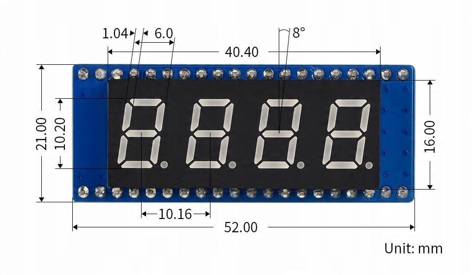 4-значний 8-сегментний дисплейний модуль для Raspberry Pi Pico, сумісний з SPI.