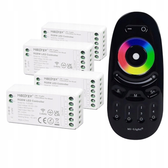 - Чотири контролери FUT038S для стрічок RGBW