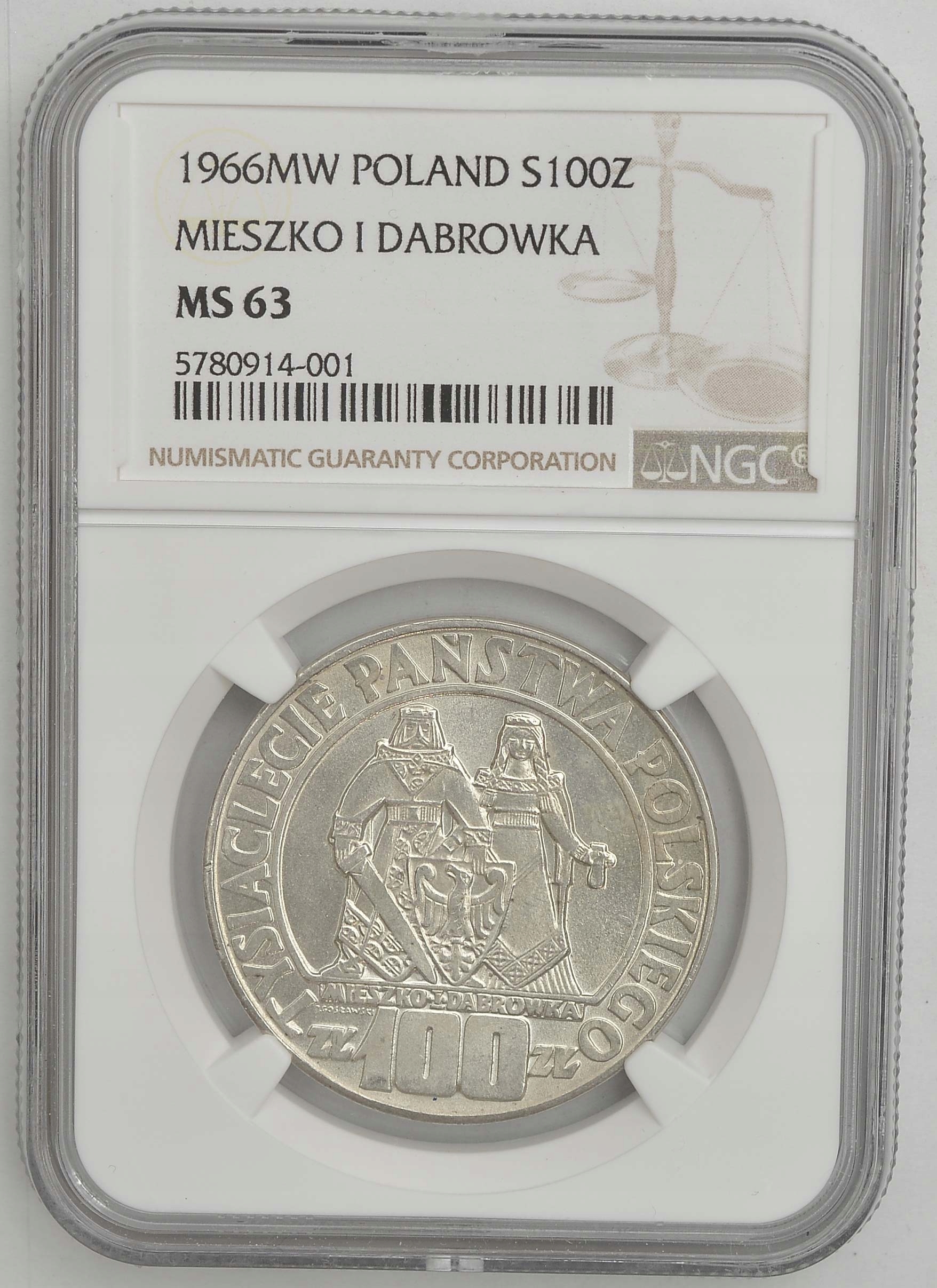 4.by.PRL , 100 PLN 1966 МЕШКО ТА ДМБРУВКА NGC MS63
