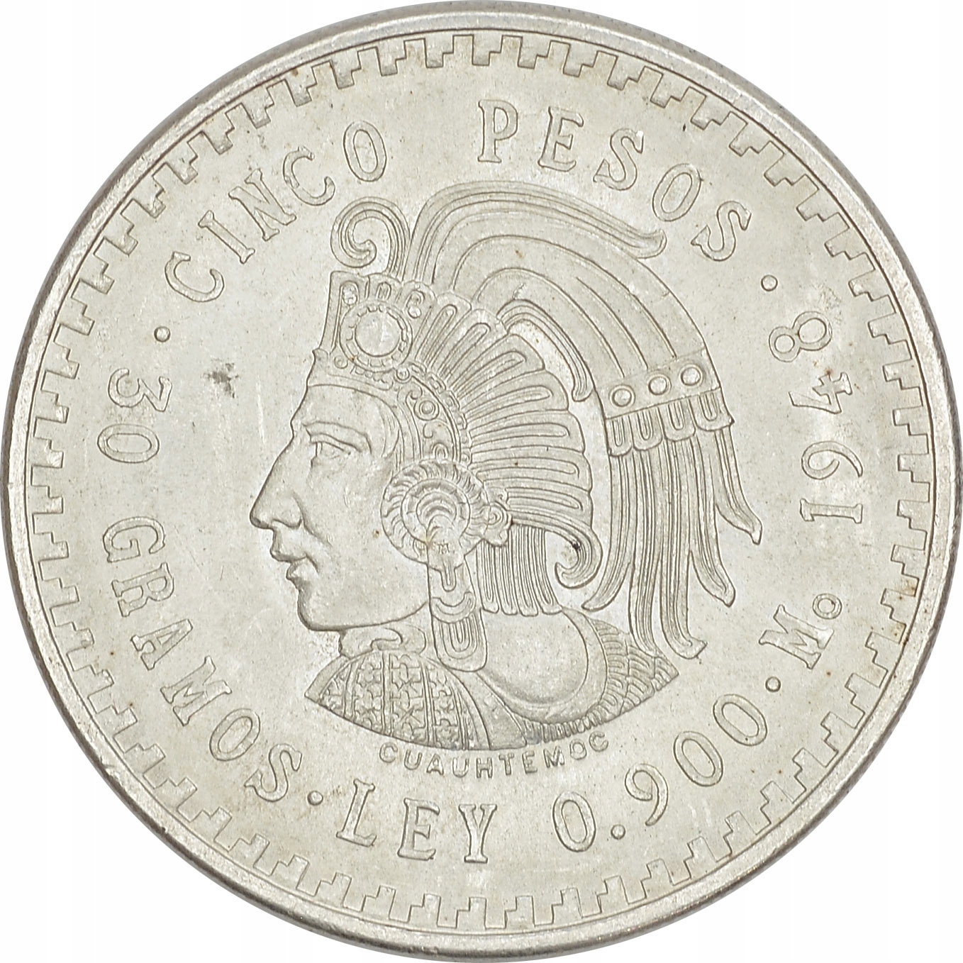 4.db.MEKSYK , 5 ПЕСО 1948 CUAUHTEMOC