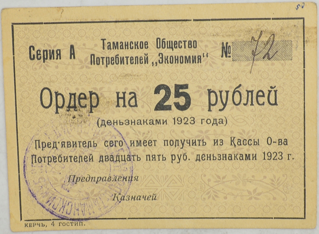 4.di.RSFSR , Тамань, 25 рублів 1923, ст.3+