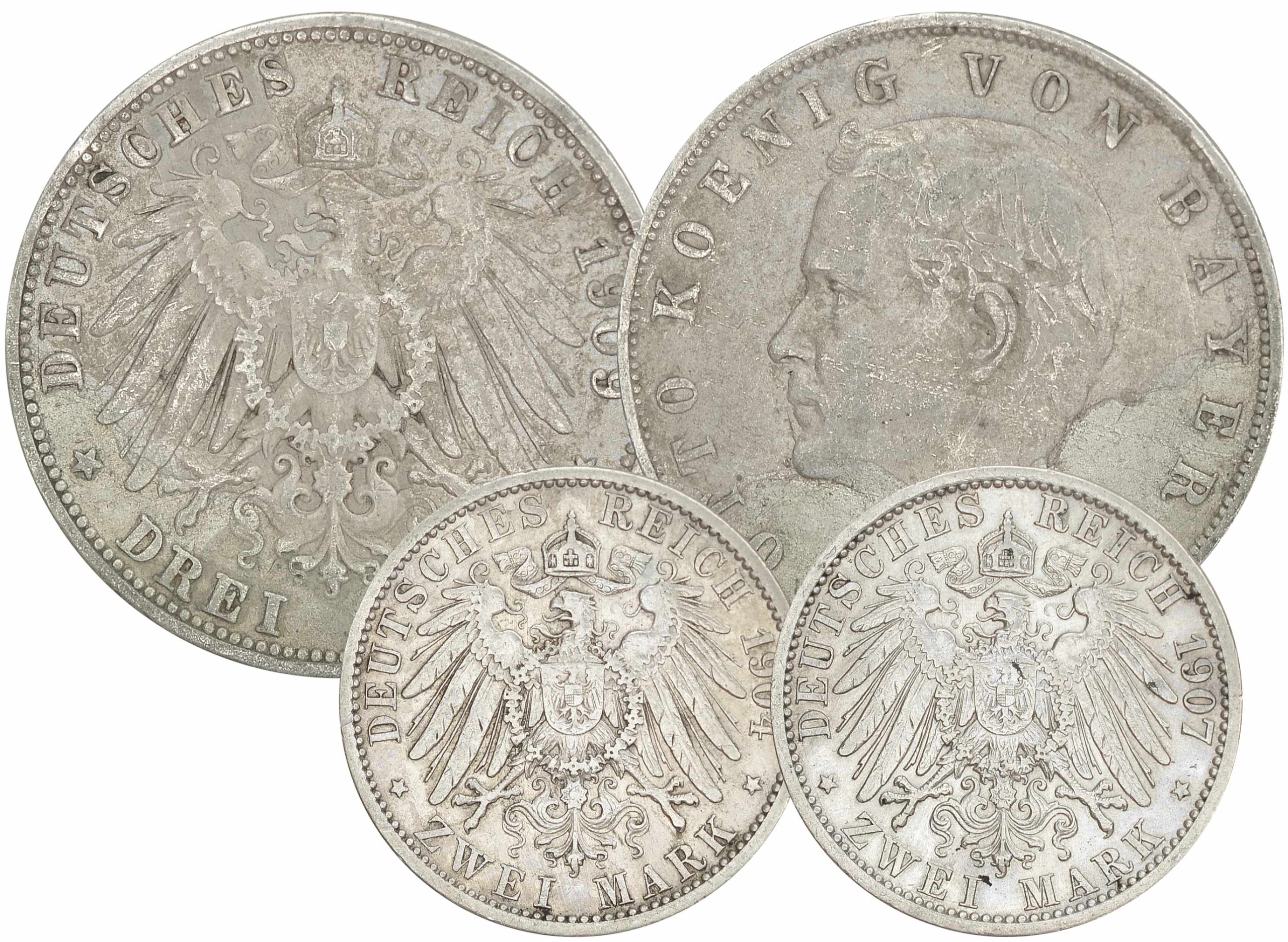 - Опис: У набір входять монети: Пруссія - 2 марки 1904 р. А, 1907 А; Баварія – 3 марки 1909 D. Якщо ви виграєте більше аукціонів, вартість доставки буде визначено.