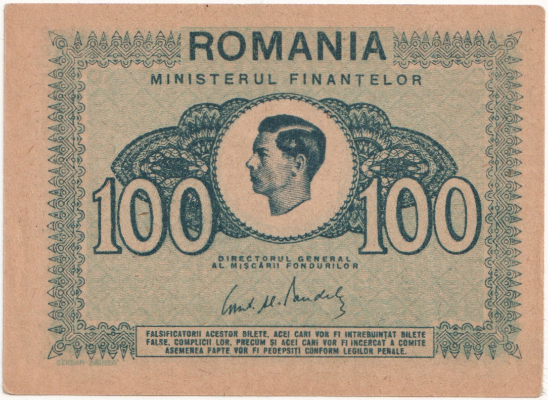 4.iu.Румунія, 100 Лей 1945, Р.78, св.1-