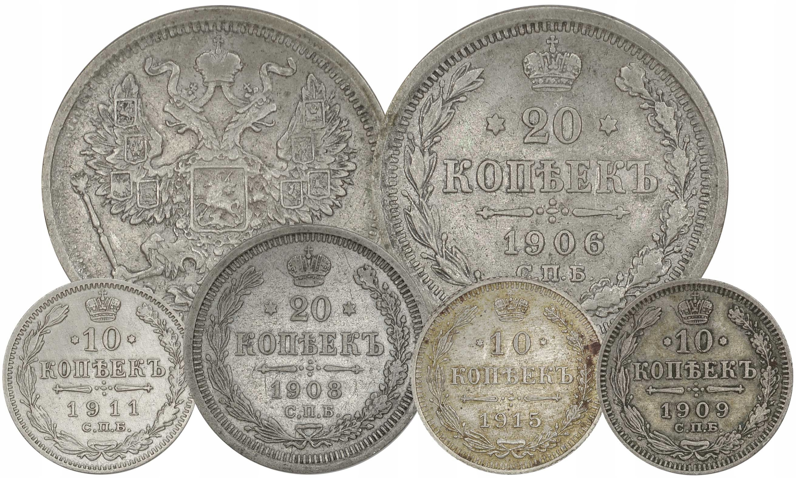 4.jc.ZEST., РОСІЯ, МИКОЛА II, МОНЕТИ ШТ.5 срібло