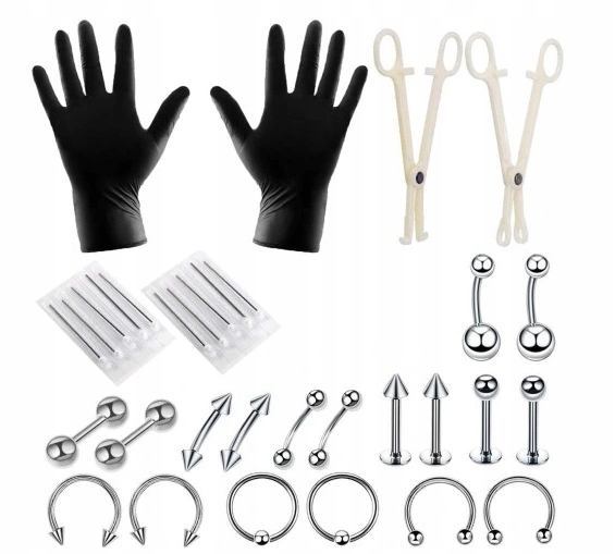 40 CZESCIOWY PROFESJONALNY ZESTAW DO PIERCINGU STERYLNE KLESZCZE