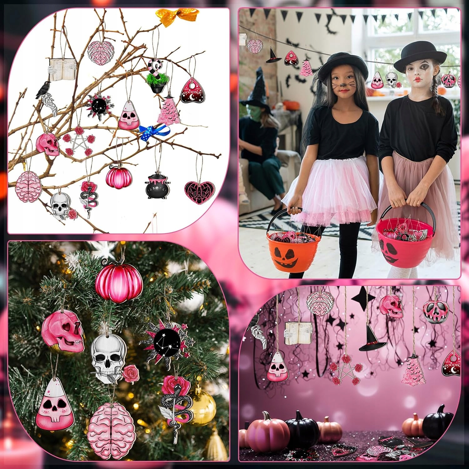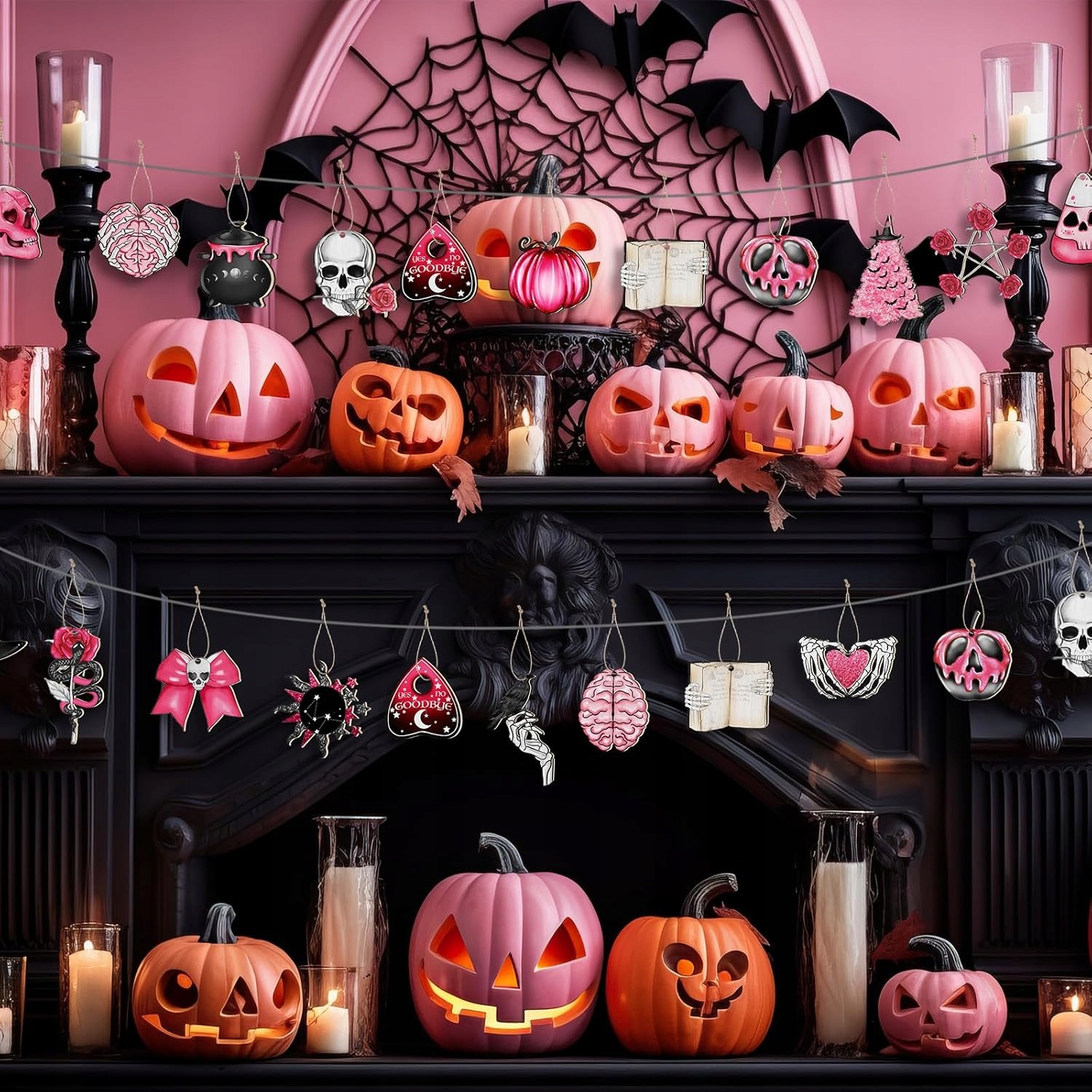 40 ДЕРЕВ’ЯНИХ ПРИКРАС НА ХЕЛОВІН, РОЖЕВІ ПІДВІСИ, ДЕКОРАЦІЯ